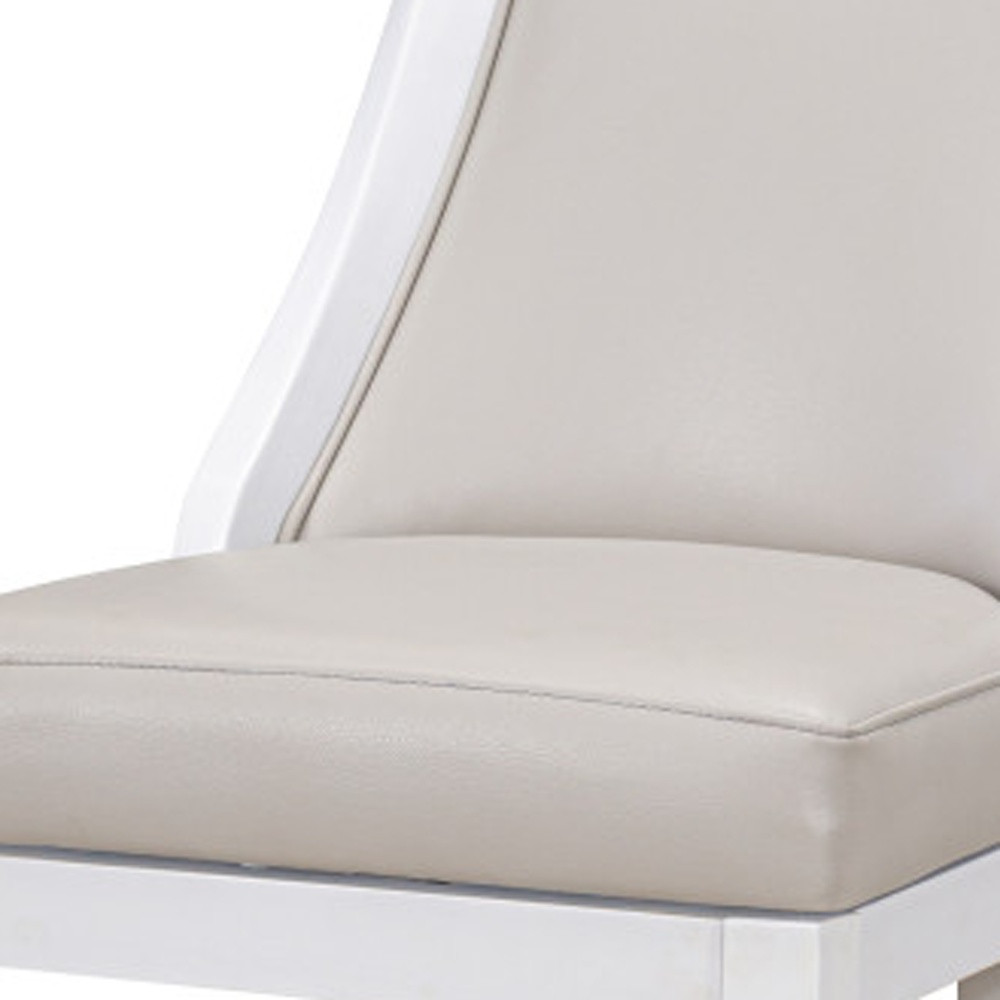 With this 31-inch gray and white faux leather and solid wood bar height swivel bar chair you can add design and extra seating to your space. The white coloration of the high quality solid wood base marries nicely with the gray faux leather upholstered seat. The rectangle shape of the seat combines with a high full curved back to give this chair a comfortable and fashionable look. 45.5-inch H x 19-inch W x 23-inch D