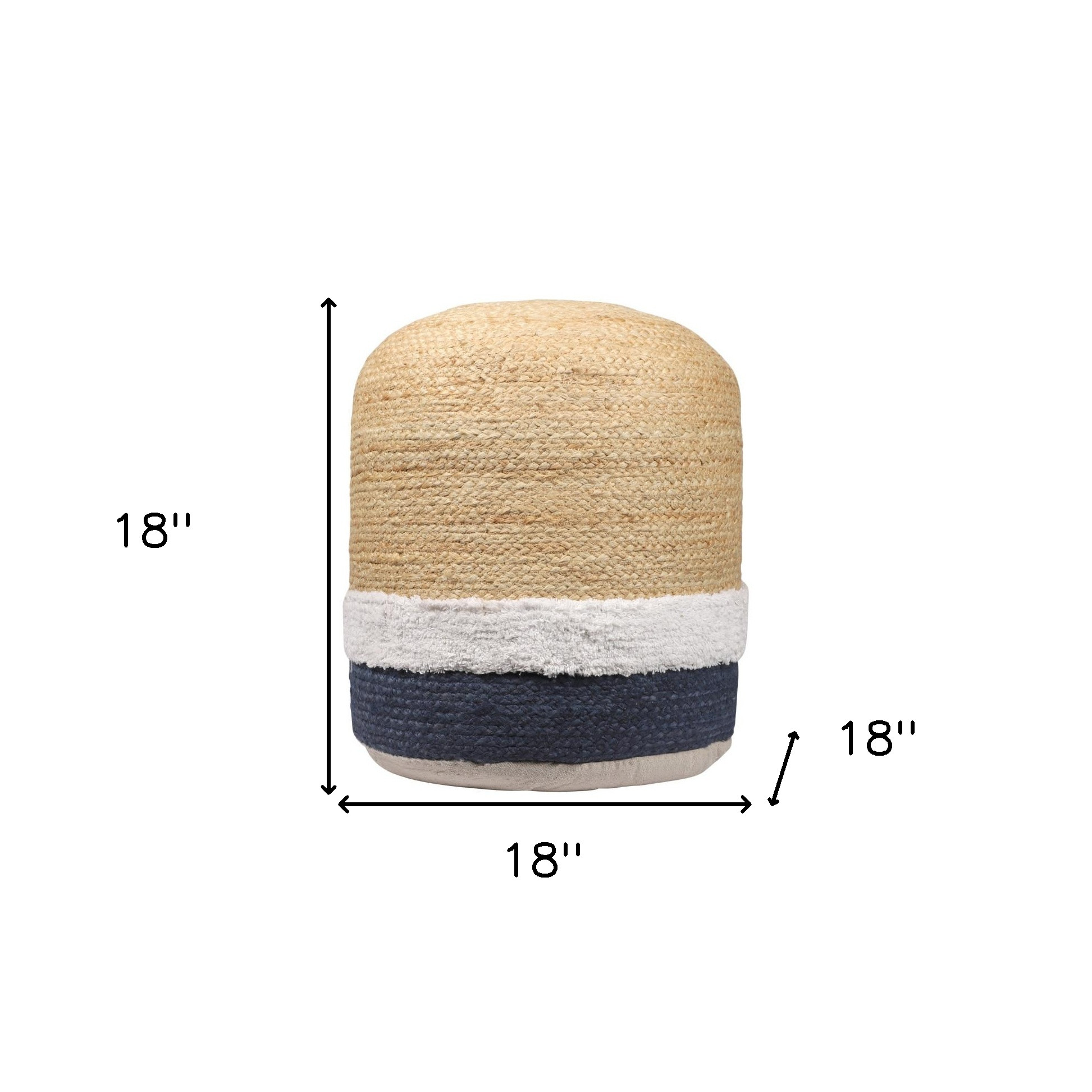 blend cylinder striped pouf ottoman, cylinder striped pouf ottoman, striped pouf ottoman, navy blue jute blend cylinder, jute blend cylinder striped pouf |