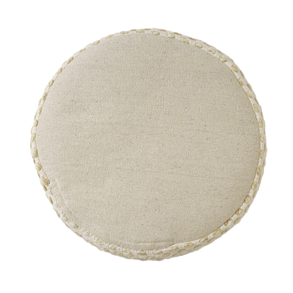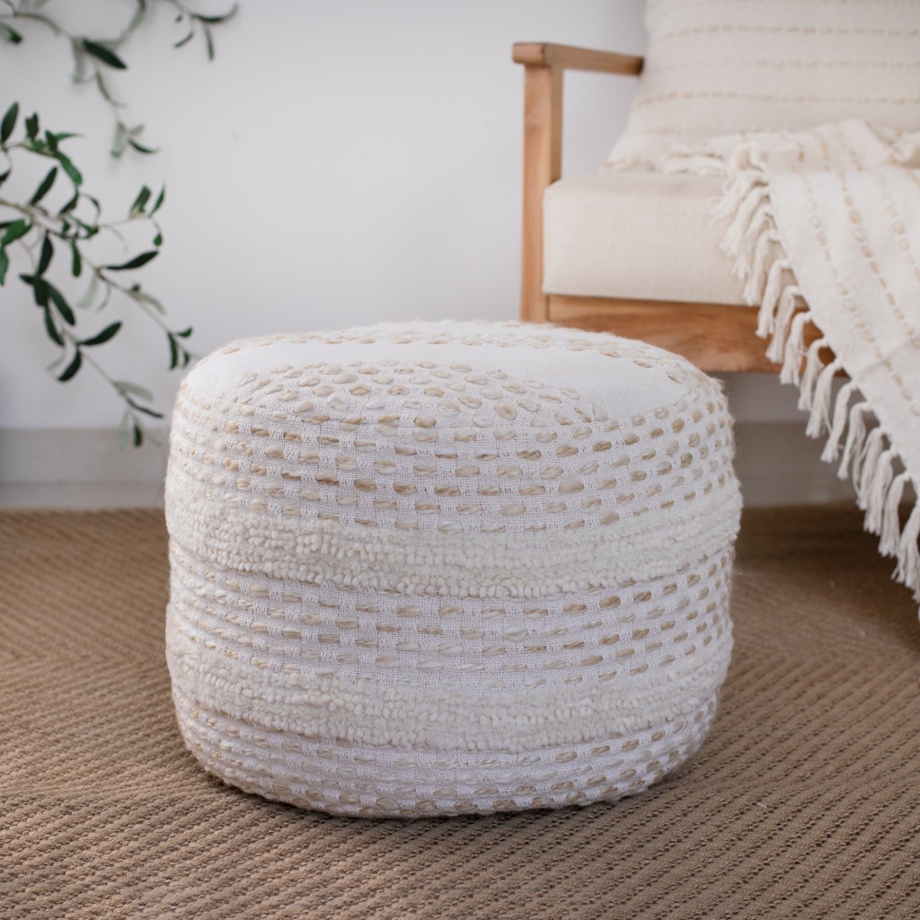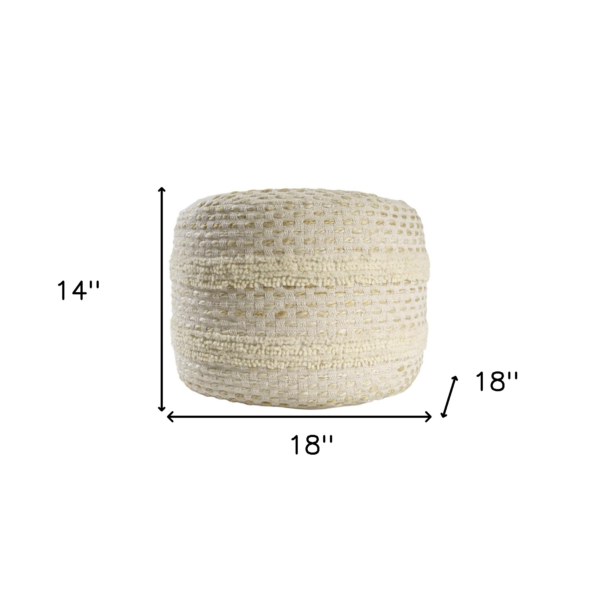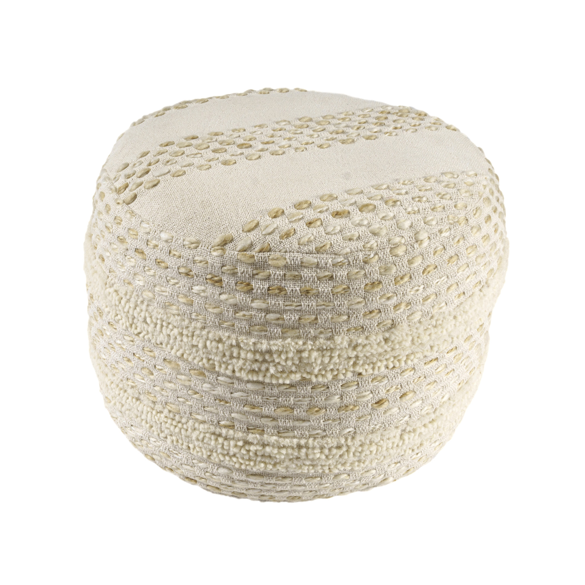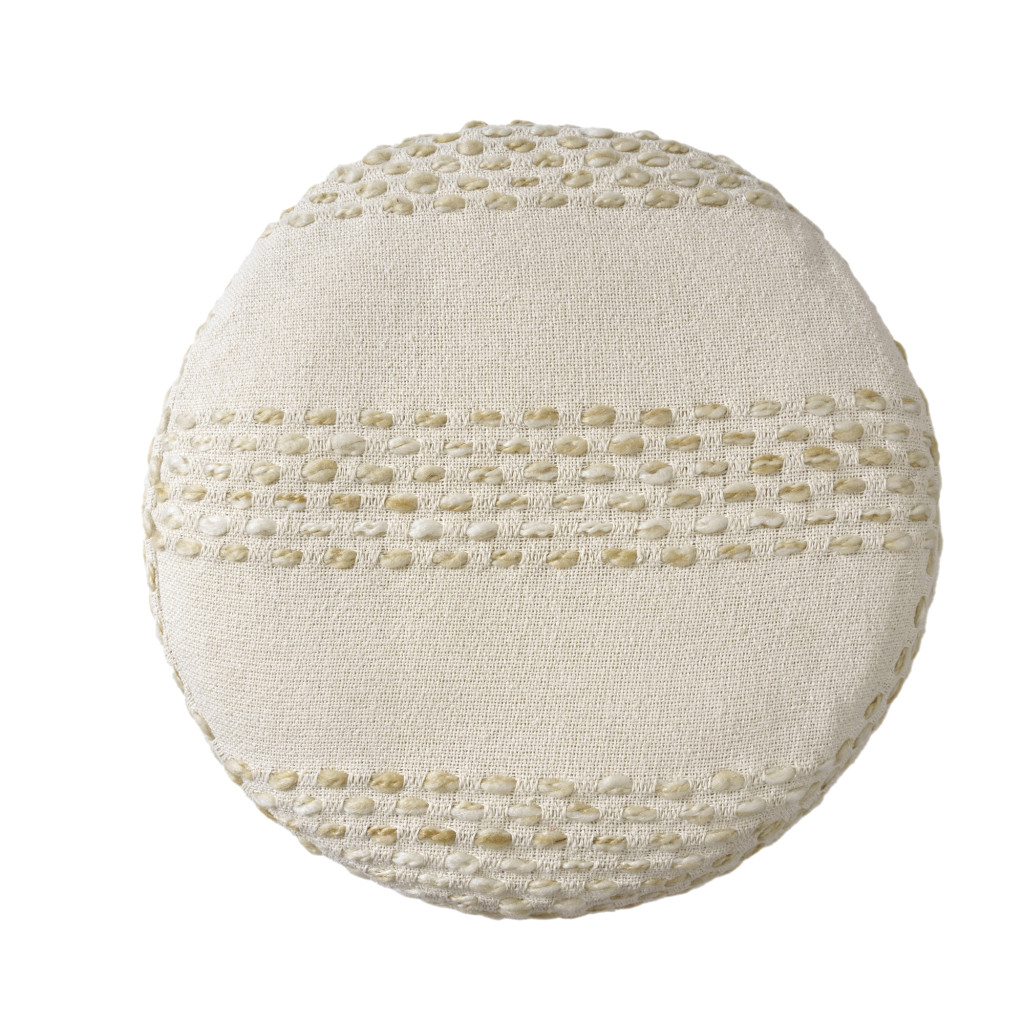 blend round striped pouf ottoman, round striped pouf ottoman, striped pouf ottoman, ivory cotton blend round striped, 18" natural ivory cotton |