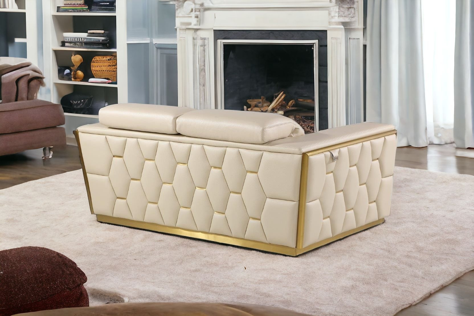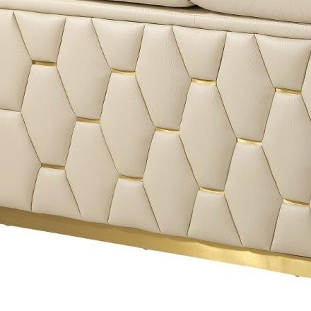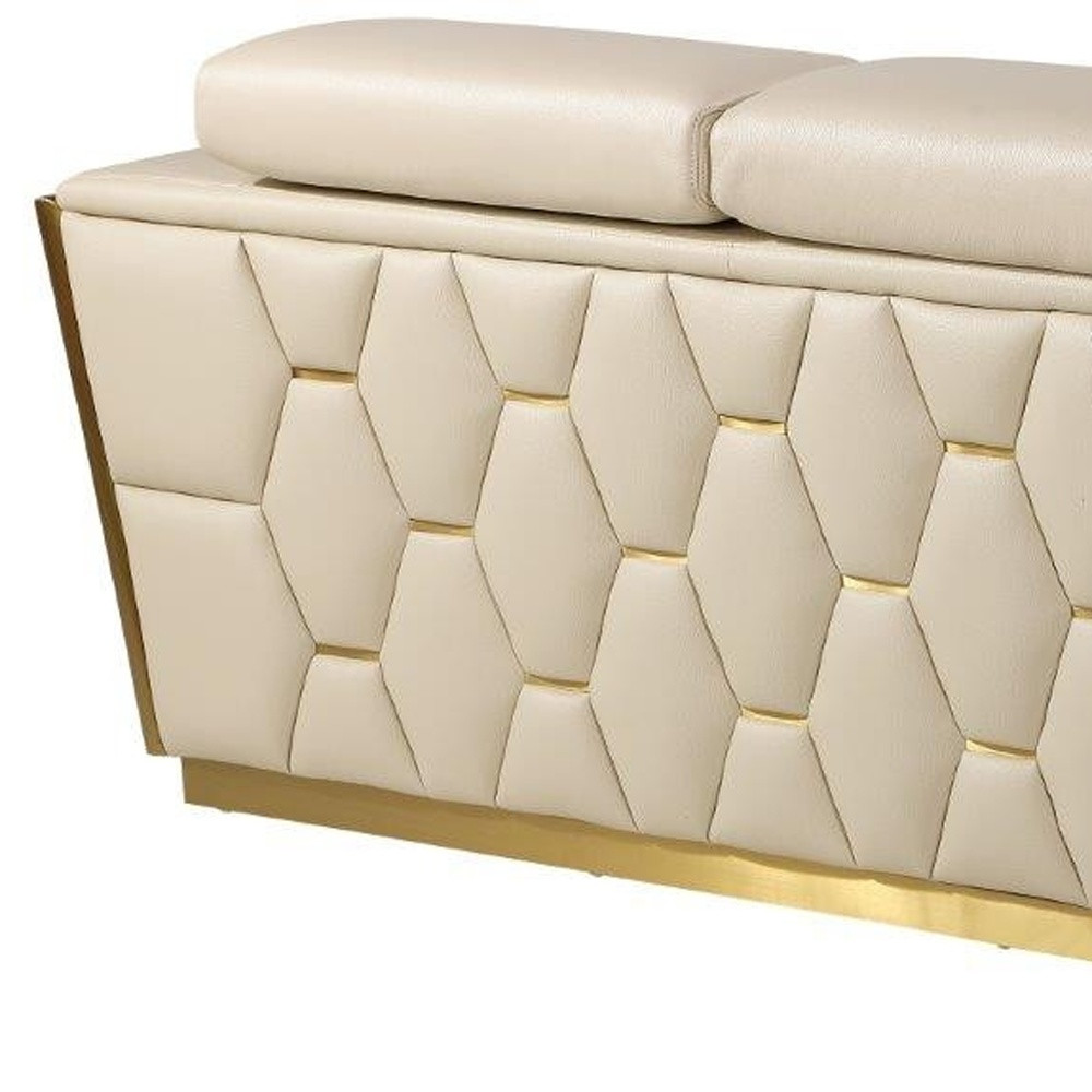 top grain italian leather sofa set, cream beige 2 piece living room set, gold trim sofa loveseat set, modern italian furniture, honeycomb design couch set, brazilian wood frame furniture, luxury beige leather sofa set, adjustable headrest loveseat sofa, contemporary gold base set, high end italian living room |