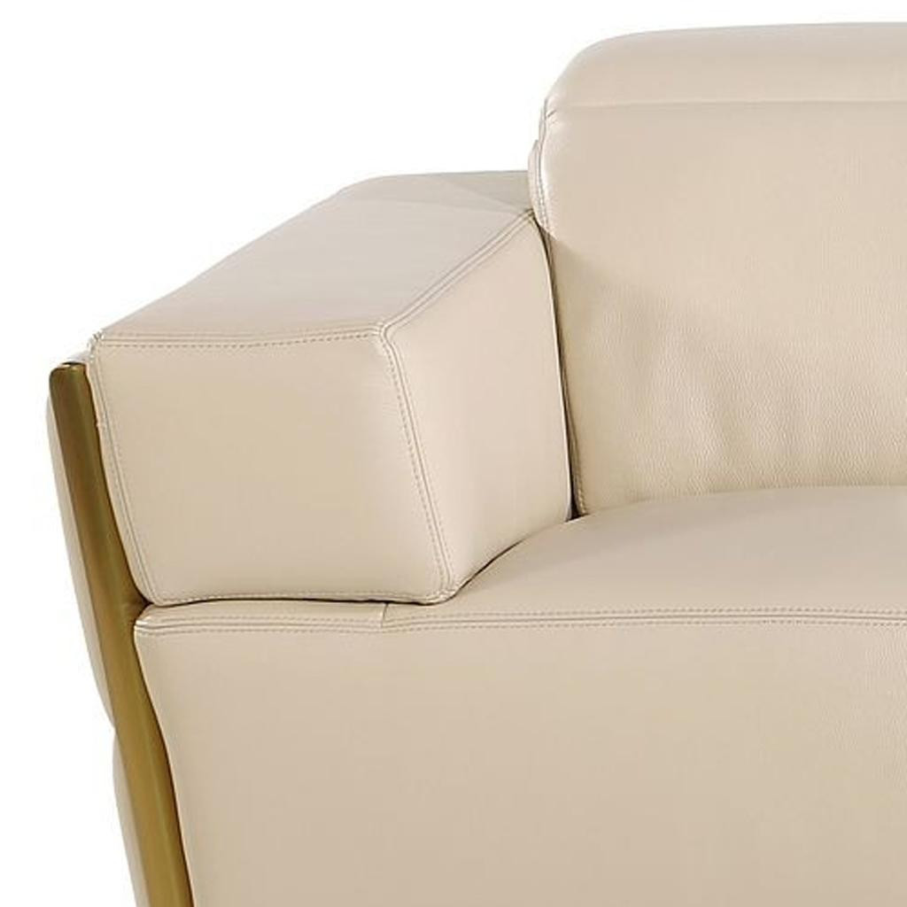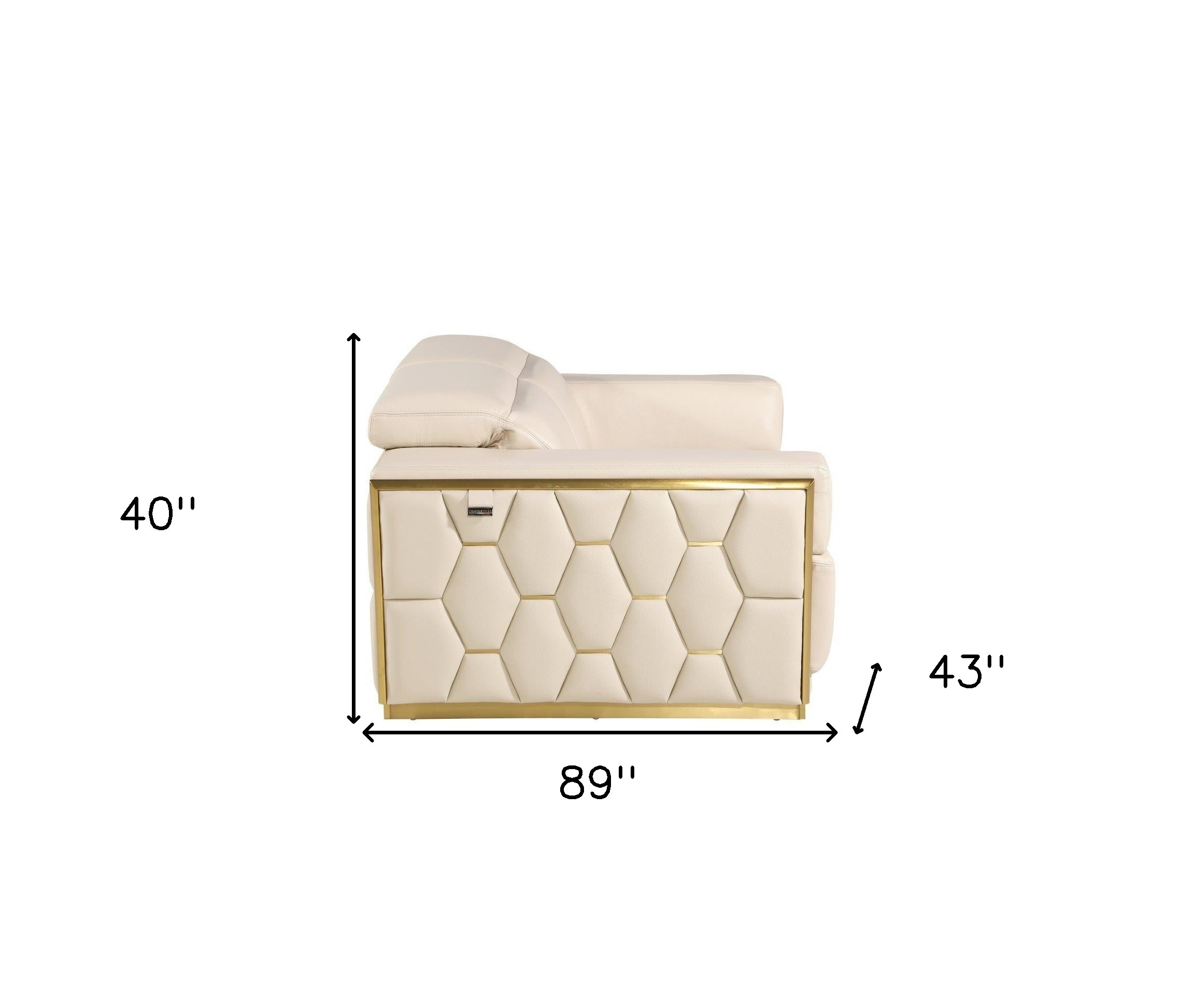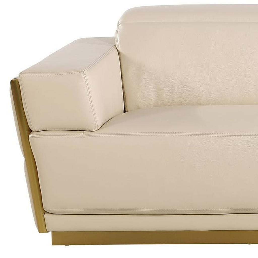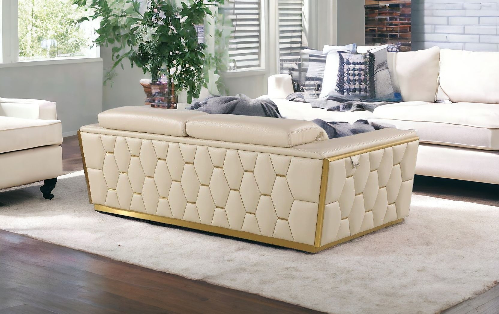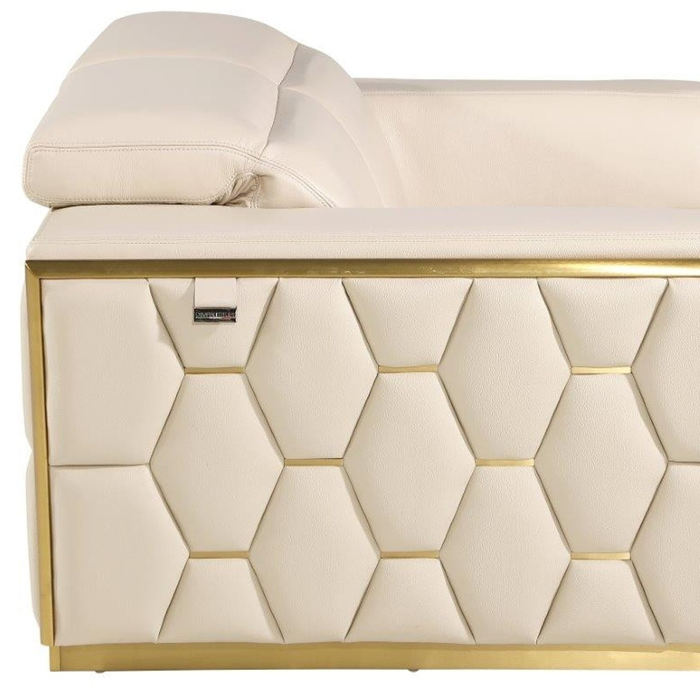 top grain italian leather 3 piece sofa set, cream beige living room furniture, modern italian sofa loveseat chair, gold trim living room set, honeycomb design sofa set, brazilian wood frame furniture, luxury beige leather set, adjustable headrest leather set, contemporary gold base sofa set, high end italian furniture |