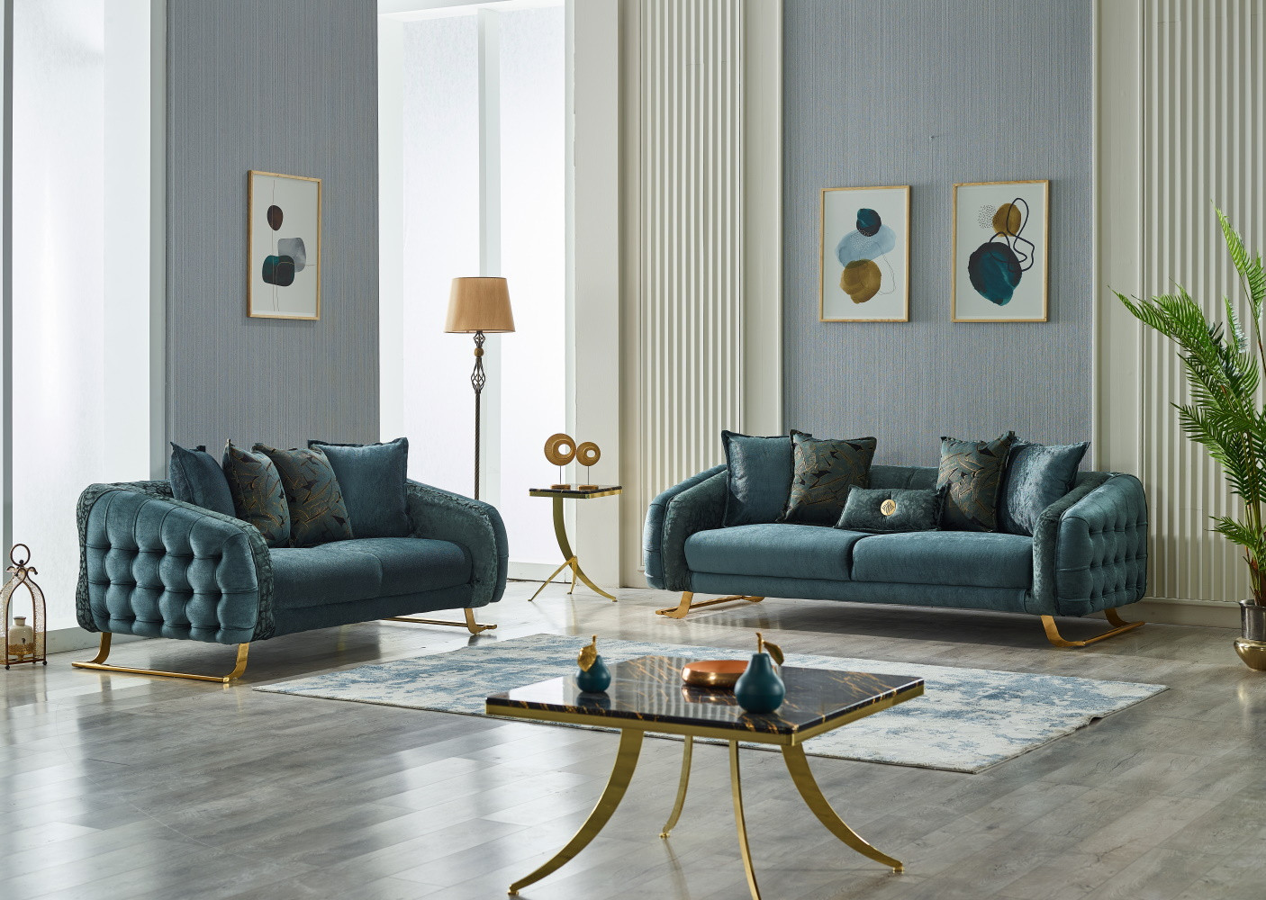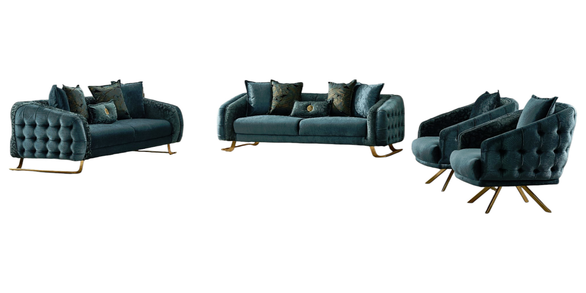When it comes to indoor seating, this four piece green linen eight person seating set has everything you need to get set and ready to relax. Solid or two-tone colorations allow you to blend easily with most any decor. Coil spring seat construction provides excellent comfort by offering a responsive and supportive seating experience. 31.00-inch h x 91.00-inch w x 39.00-inch d.