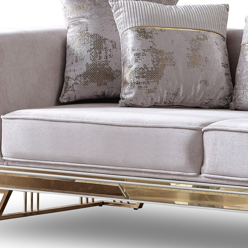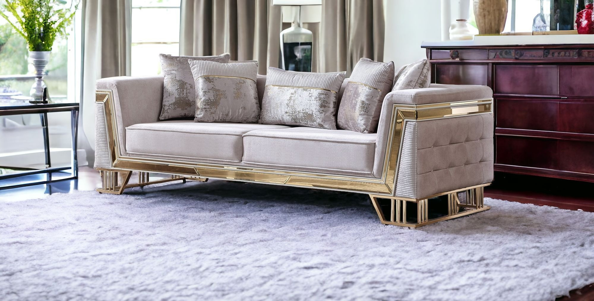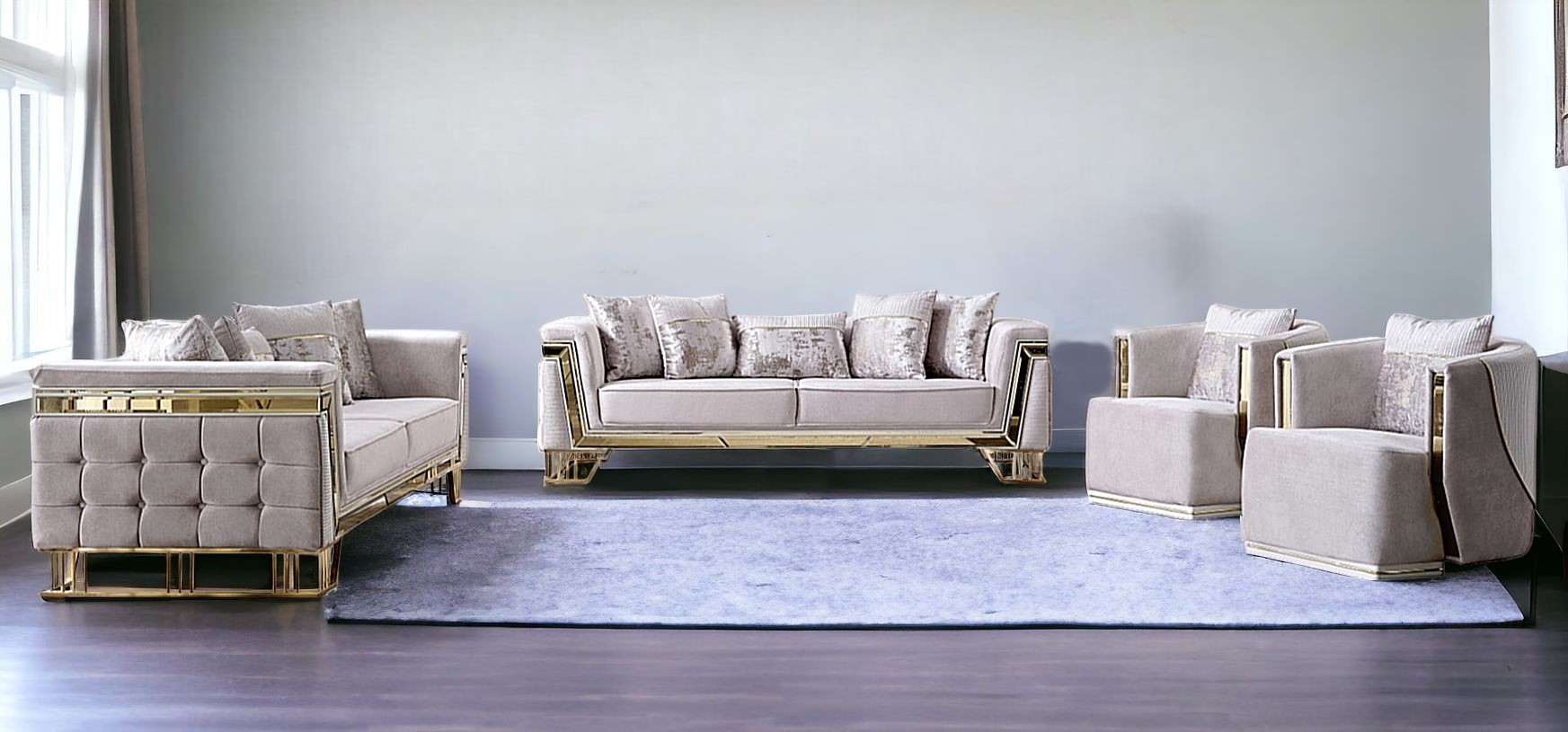 Prepare to amaze even the most discerning critics with our four piece cream linen eight person seating set. Solid or two-tone colorations allow you to blend easily with most any decor. Coil spring seat construction provides excellent comfort by offering a responsive and supportive seating experience. 28.00-inch h x 89.00-inch w x 35.00-inch d.