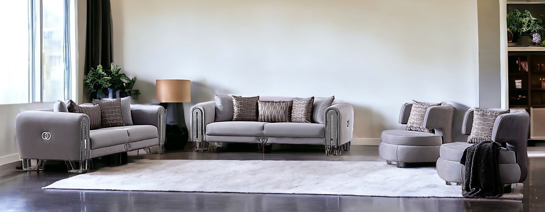 Prepare to amaze even the most discerning critics with our four piece gray linen eight person seating set. Solid or two-tone colorations allow you to blend easily with most any decor. The presence of coil spring seat construction helps distribute weight evenly, reducing pressure points. 29.00-inch h x 94.00-inch w x 39.00-inch d.