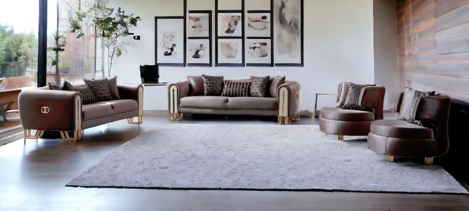 Step into a world of unparalleled seating comfort with our remarkable four piece brown linen eight person seating set. Solid or two-tone colorations allow you to blend easily with most any decor. Coil spring seat construction provides excellent comfort by offering a responsive and supportive seating experience. 29.00-inch h x 94.00-inch w x 39.00-inch d.