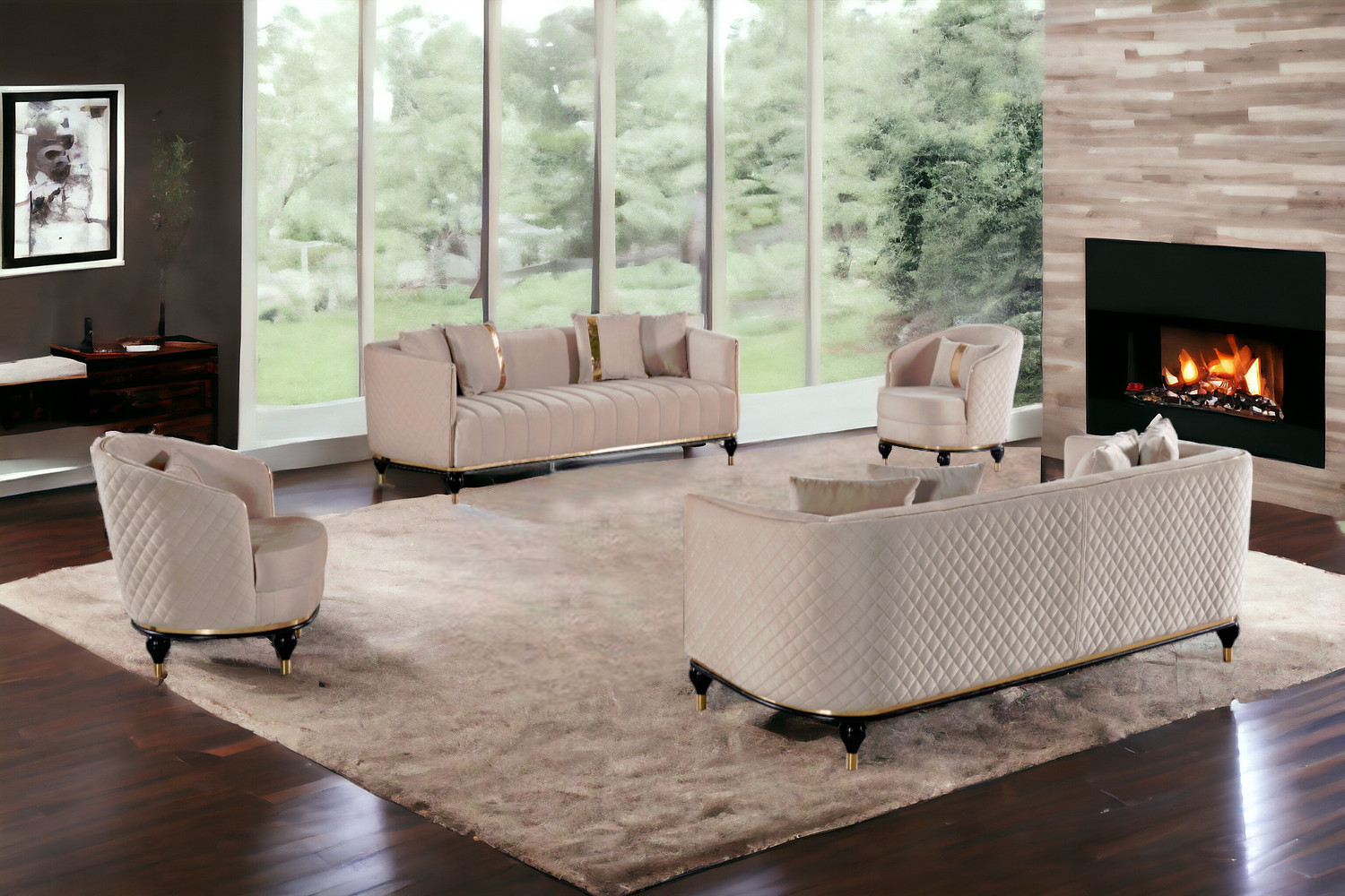 Prepare to amaze even the most discerning critics with our four piece cream linen eight person seating set. Solid or two-tone colorations allow you to blend easily with most any decor. Coil spring seat construction provides excellent comfort by offering a responsive and supportive seating experience. 29.00-inch h x 85.00-inch w x 35.00-inch d.