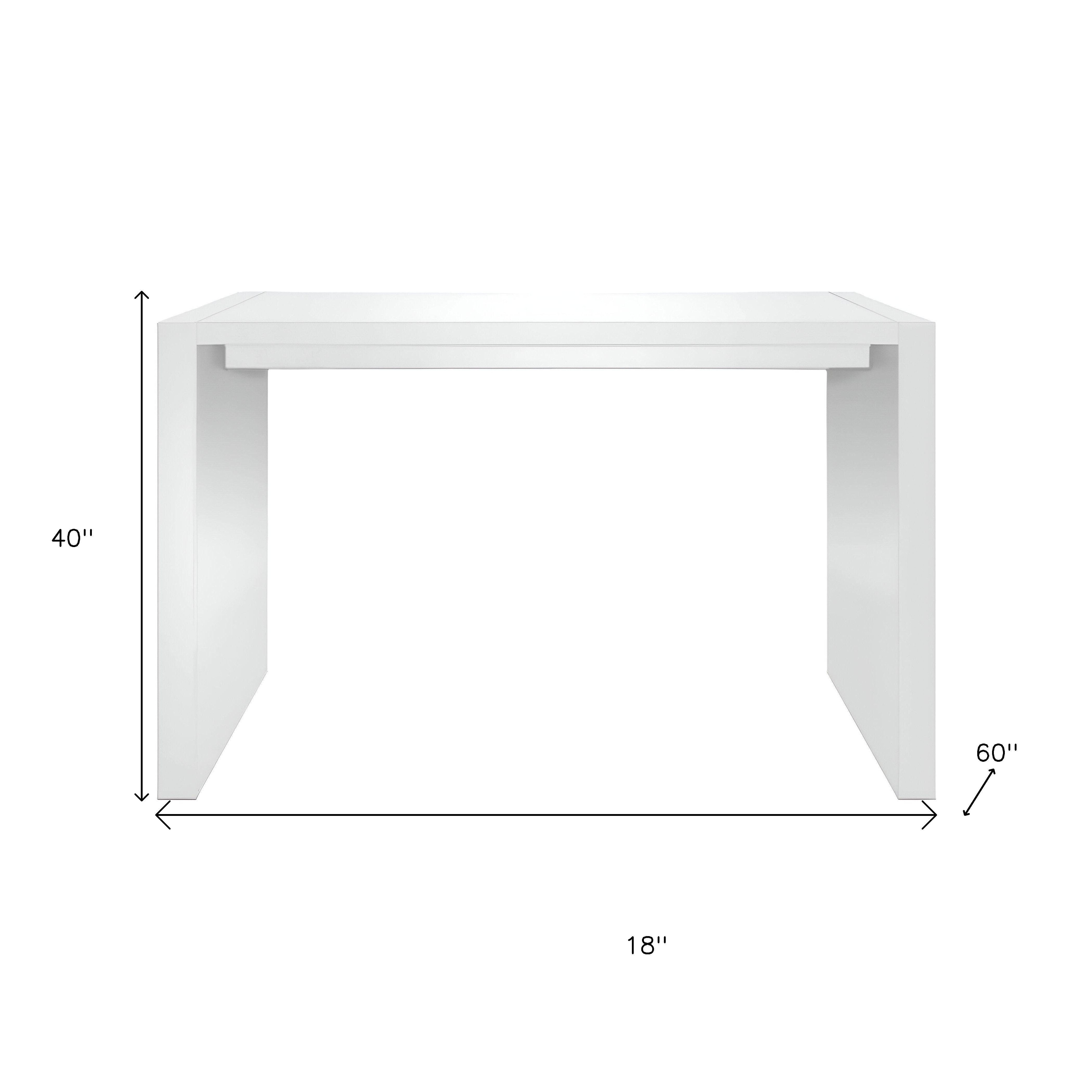 Enhance your bar and restaurant space with this 18-inch white rectangular wood bar table featuring a contemporary design and sleek gloss finish. Crafted from manufactured wood in a pristine white color. The rectangular shape and high stature offers a modern touch. Perfect for intimate dining or casual drinks, this table exudes a clean and chic aesthetic that is sure to impress your guests with its simple yet sophisticated allure. 40-inch h x 18-inch w x 60-inch d.