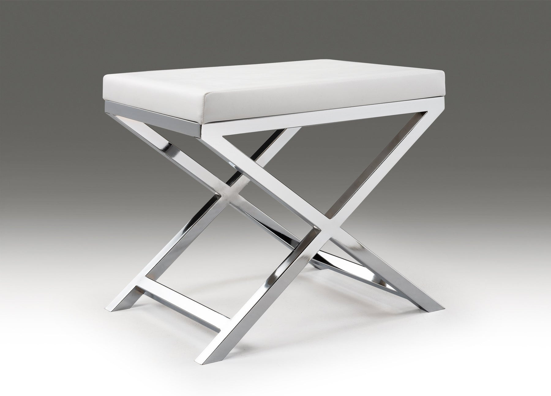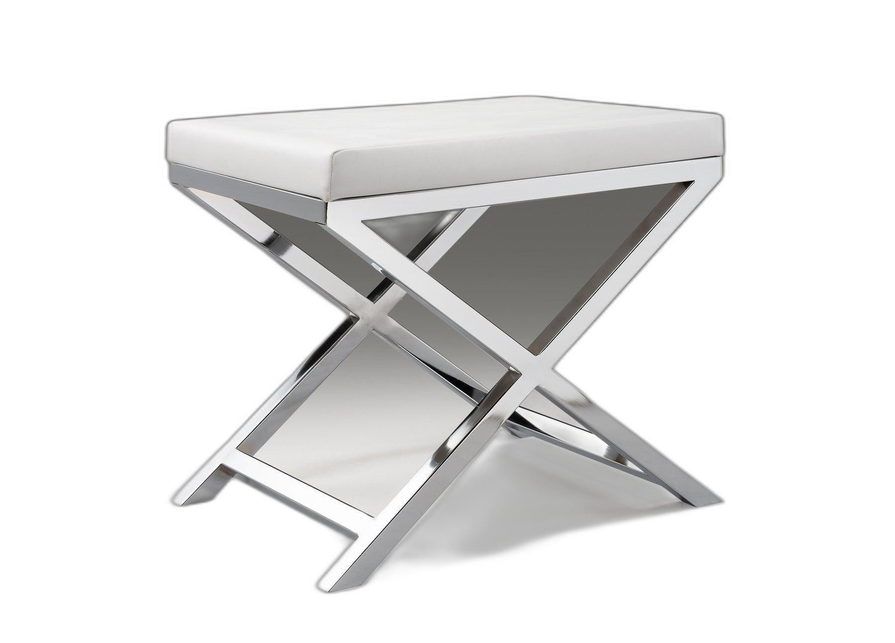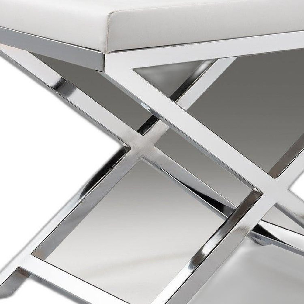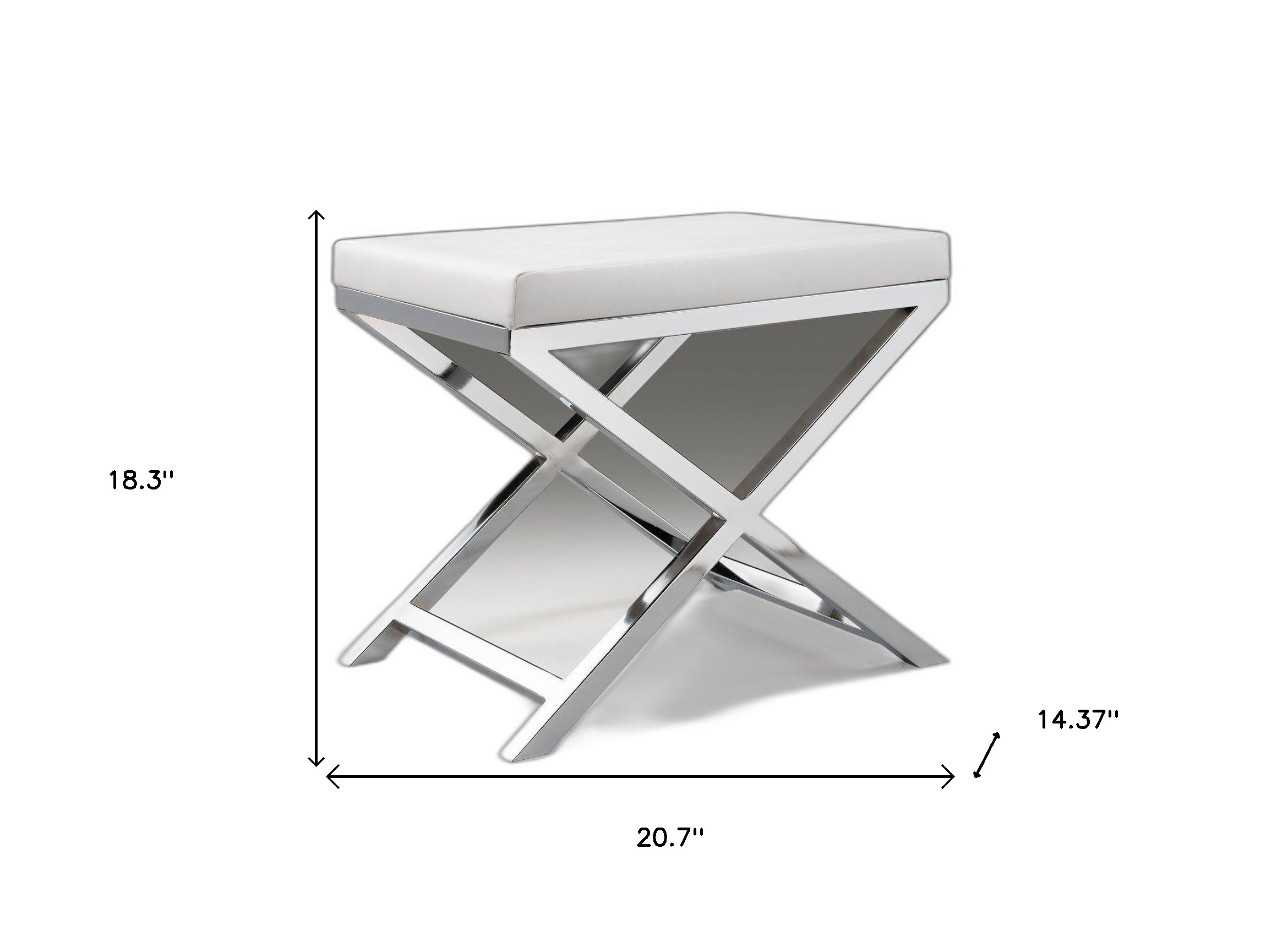 Add an air of fashion to your room and rejuvenate the space with this 21-inch white and silver faux leather vanity chair. This gorgeous solid color white vanity chair is masterfully upholstered in durable faux leather. The sturdy inner frame is built with high quality metal, featuring a loose back that is accented with soft and comfortable cushioning. 18.3-inch H x 20.7-inch W x 14.37-inch D
