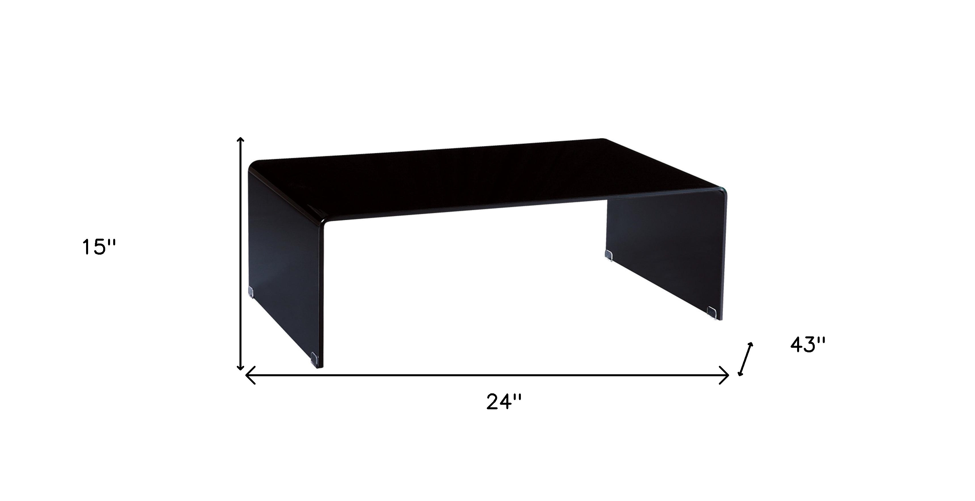 This stylish 24-inch black glass sled coffee table is not only practical, but good looking and built to last. Create an inspiring atmosphere in most any room with this black glass table. This rectangular table is an classic yet updated way to accent your room. If you're looking for something that can fit into a living area, bedroom, or office, this coffee table is for you. This coffee table is the sturdy, reliable and stylish answer to your living room needs. 15-inch h x 24-inch w x 43-inch d.