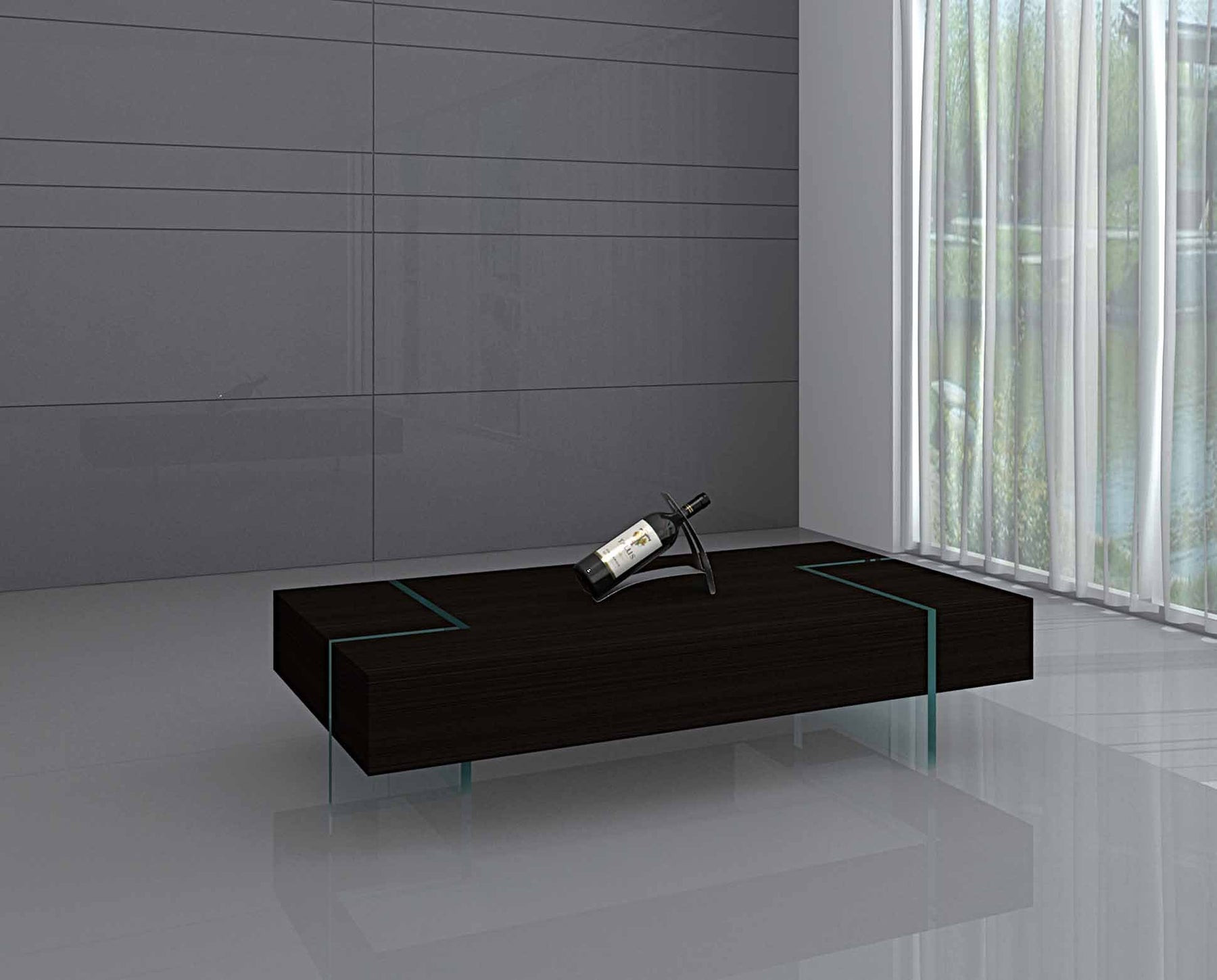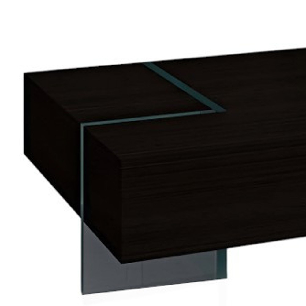 wood glass sled coffee table, glass sled coffee table, sled coffee table, 53" black clear wood glass, 53" black clear wood |