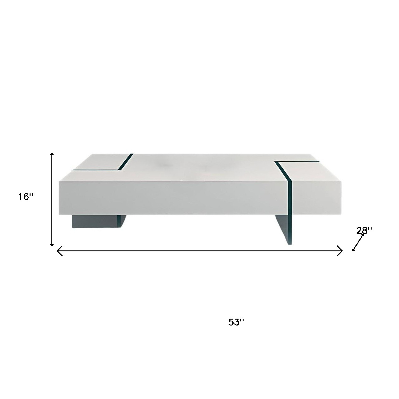 Give your living room, family room, or office the perfect anchor piece with this 53-inch white and clear wood and glass sled coffee table. The clear coloration of the high quality glass base marries nicely with the white manufactured wood top surface. This classic rectangular table will be a great accent in any room if you're looking for something that can fit into a living area, bedroom, or office, this coffee table is for you. This coffee table is the sturdy, reliable and stylish answer to your living room needs. 16-inch h x 53-inch w x 28-inch d.
