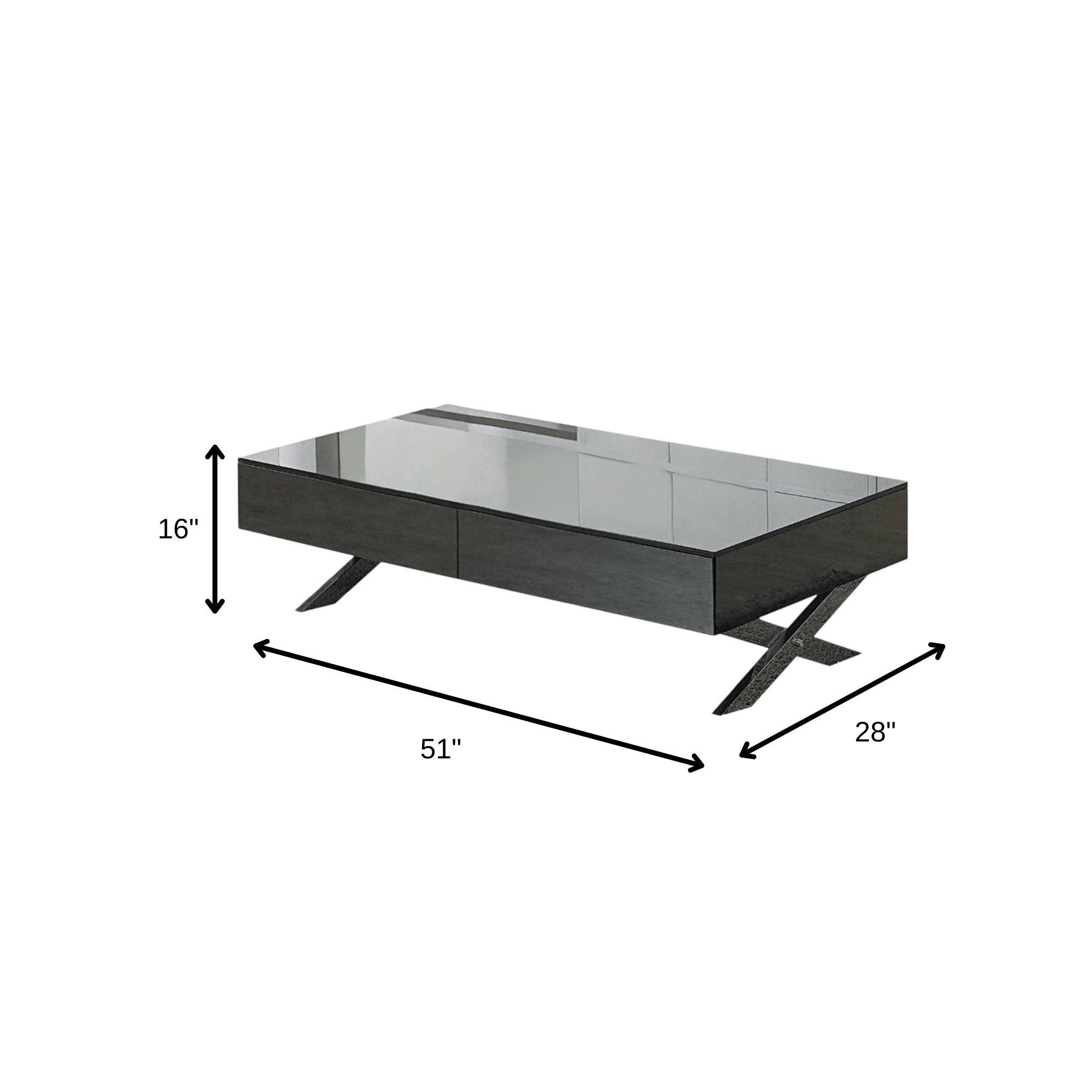 Make a statement with the 28-inch gray and silver glass and metal mirrored coffee table with two drawers and infuse a dash of character and personality into your space. The gray glass top of this table is a nice visual contrast to the high quality, silver metal of the base. Reflective pieces of mirrored glass give this table a glamorous and unique look. This rectangular table is an classic yet updated way to accent your room. It has an attractive design that will definitely breathe some fresh air into your interior. 16-inch h x 28-inch w x 51-inch d.