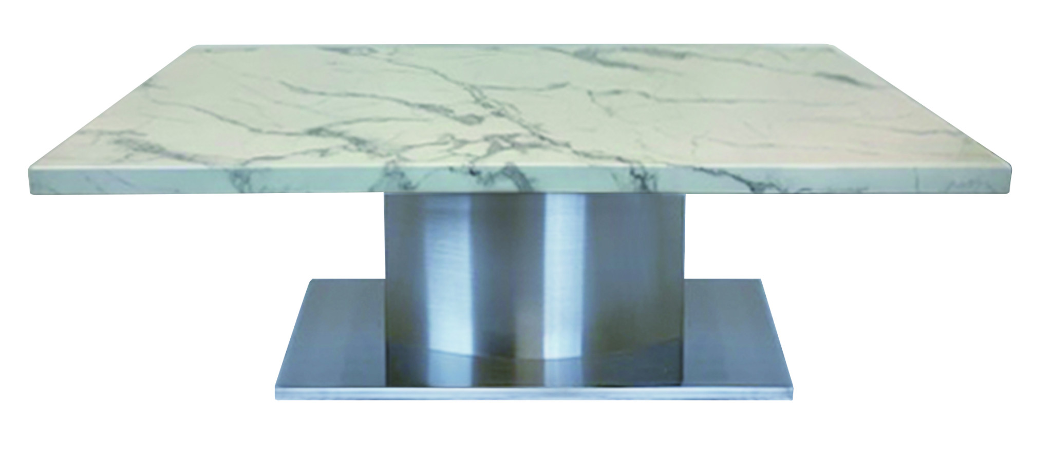 Make your living room or family room really stand out with this 51-inch white and silver genuine marble and stainless steel pedestal coffee table. A silver stainless steel frame is finished off with a white genuine marble top that is the epitome of quality construction and design. This rectangular table is an classic yet updated way to accent your room. If you're looking for something that can fit into a living area, bedroom, or office, this coffee table is for you. This coffee table is the sturdy, reliable and stylish answer to your living room needs. 16-inch h x 51-inch w x 28-inch d.