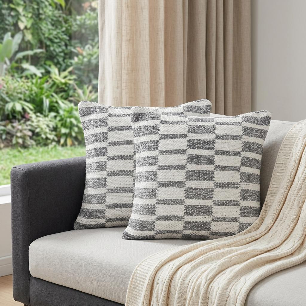 Unique and decorative, this comfortable set of two 18-inch gray geometric cotton throw pillows will leave a lasting impression. Ultra durable gray cotton has been used to make this decorative pillow set a beautiful look that will stand the test of time. Decorative pillows are a great way to change up the look and feel of your space easily and quickly. Decorative throw pillows not only add color and dimension to your space but can be comfy and supportive when you are lounging and cuddling as well. 18-inch h x 18-inch w x 4-inch d.