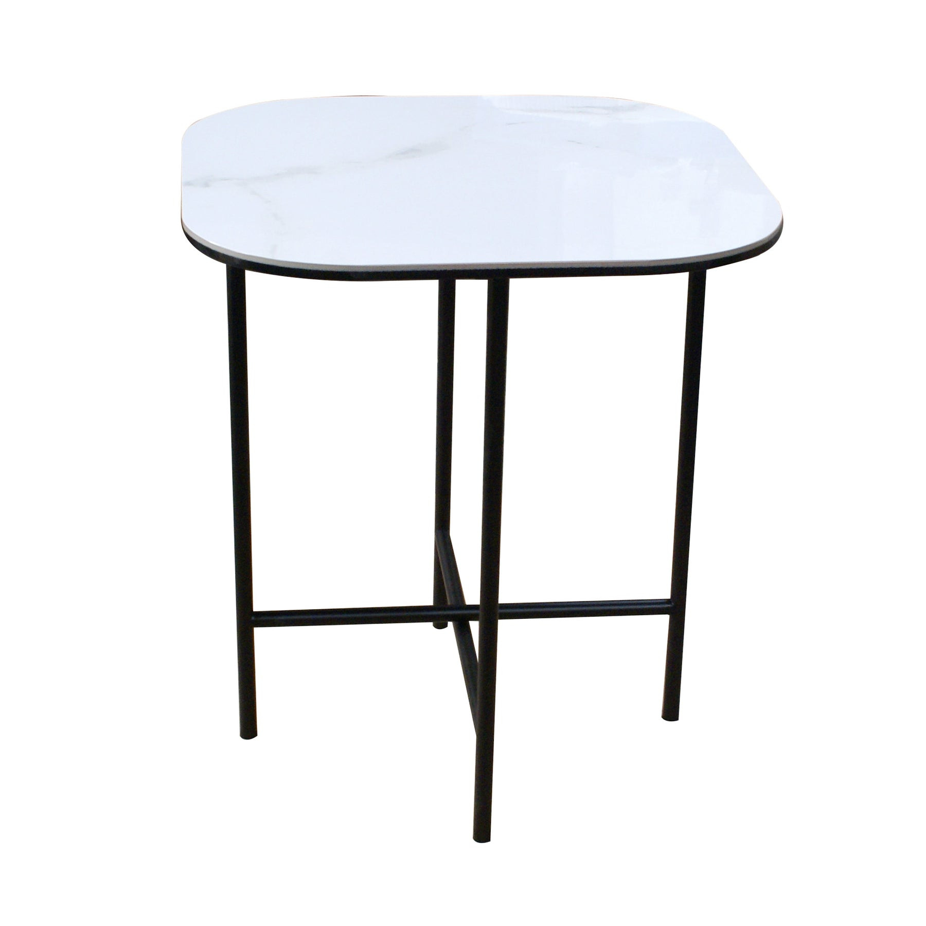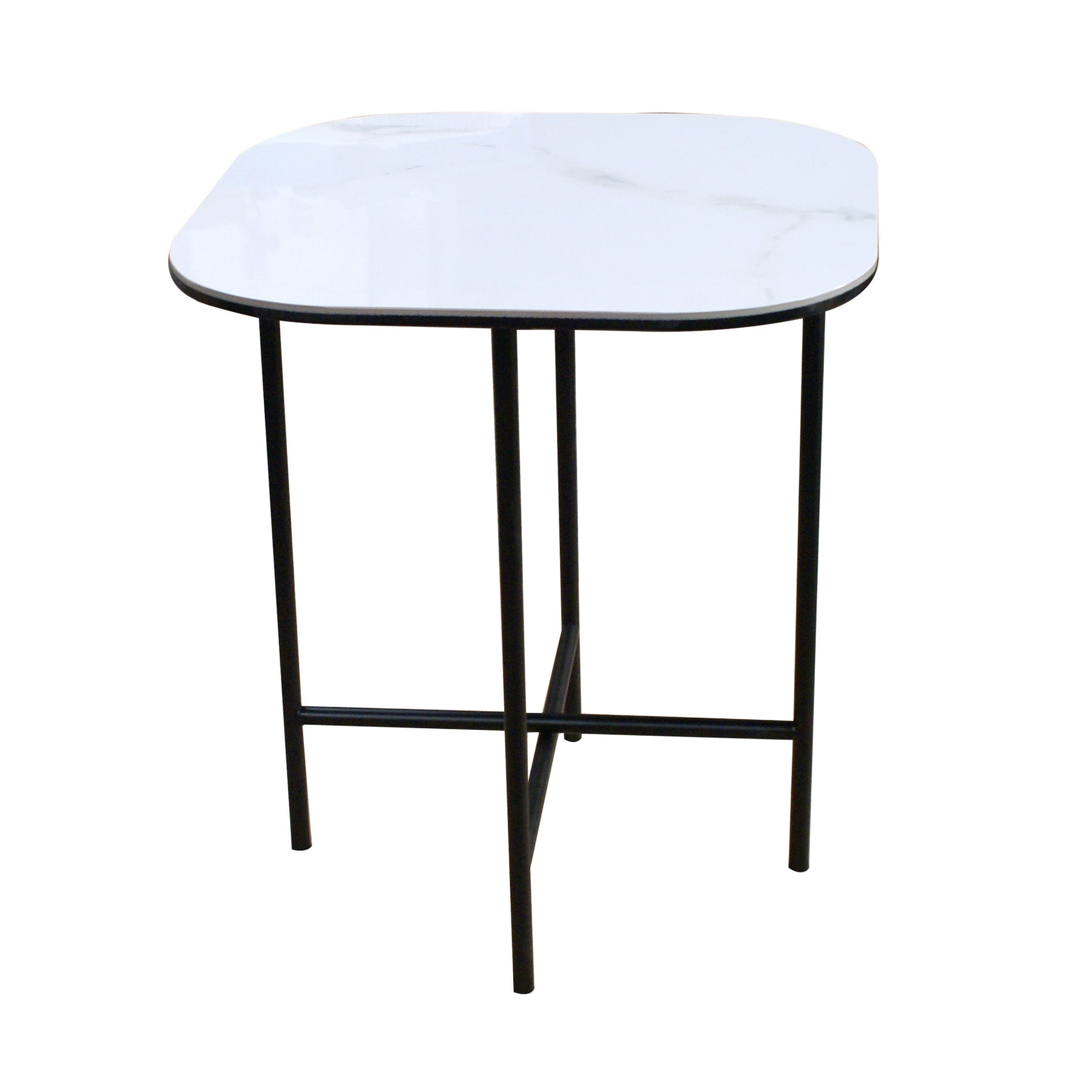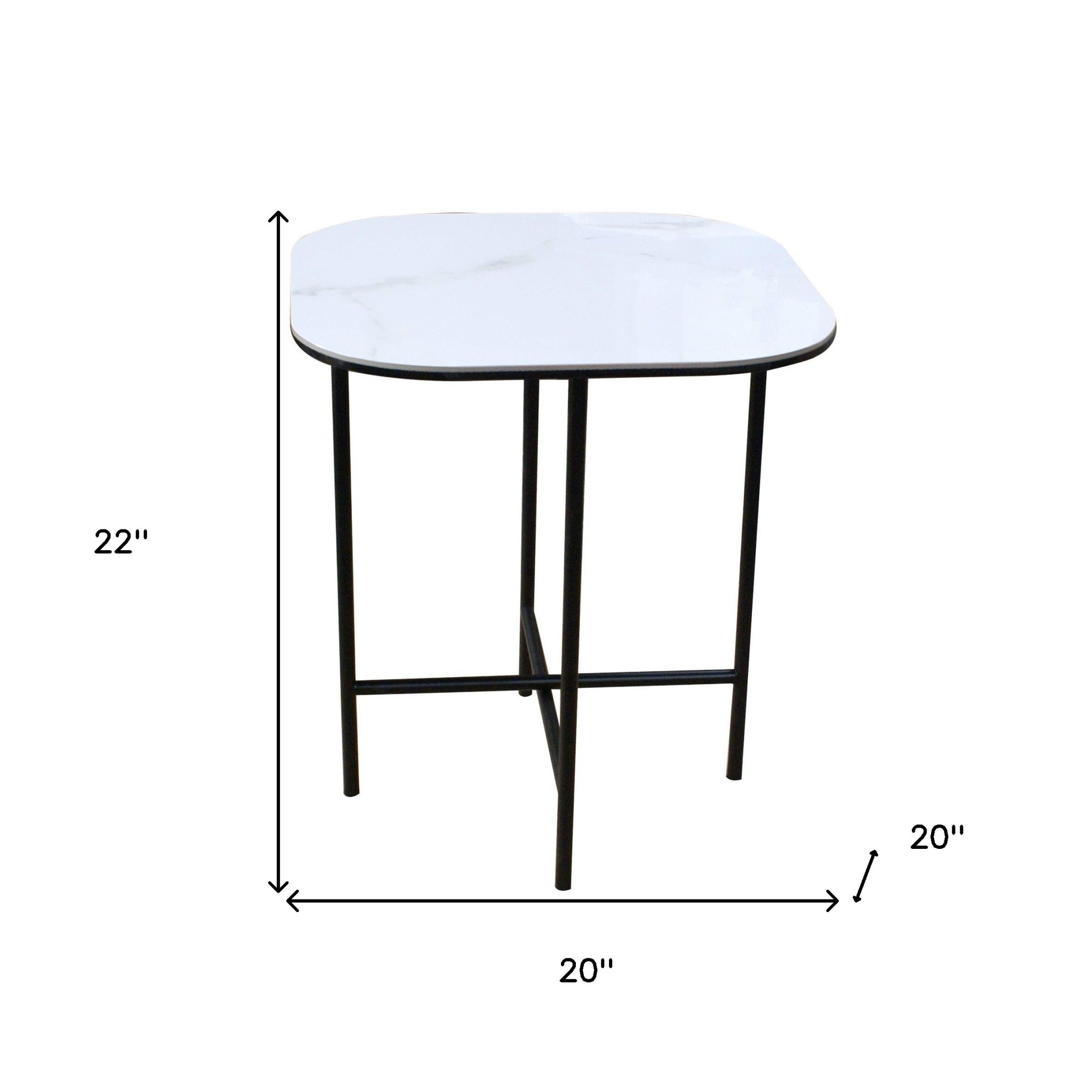 Show off your exquisite taste with this 22-inch white and black ceramic and metal square end table. The black coloration of the high quality metal base marries nicely with the white ceramic top. An ideal location for placing your snacks and drinks, and a place to keep your lamp, frames, or other accessories. This versatile table is a great accent for most any room. 22-inch h x 20-inch w x 20-inch d.