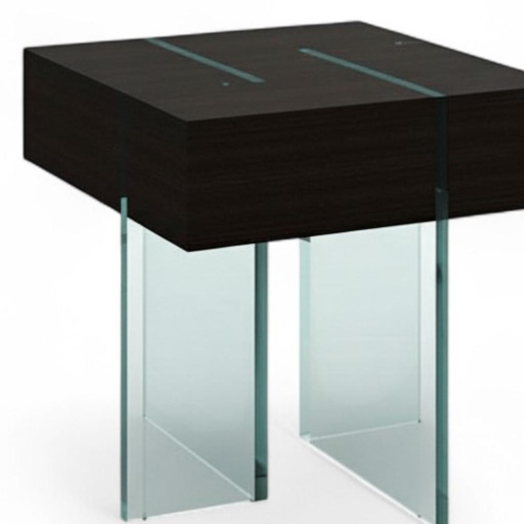 glass square sled end table, 22" espresso clear wood, 22" espresso clear wood glass, espresso clear wood glass square, clear wood glass square sled |