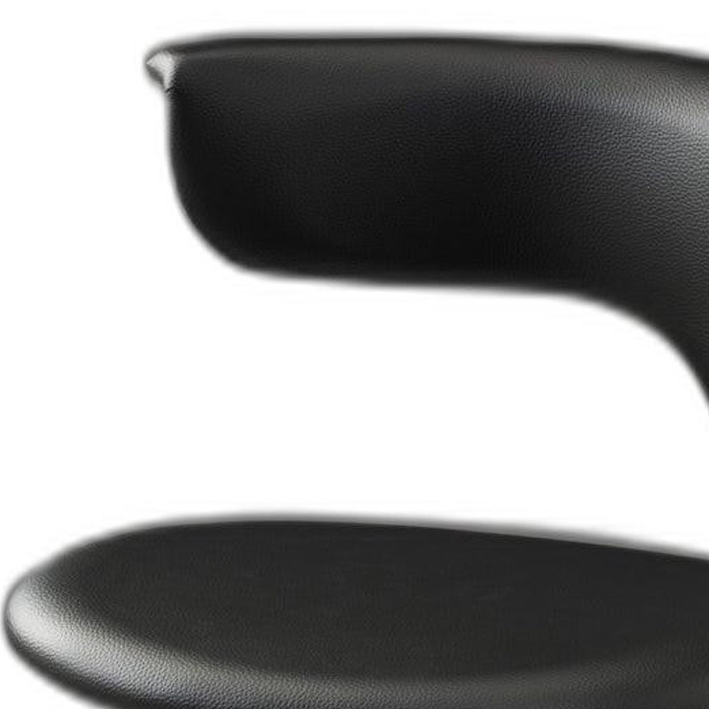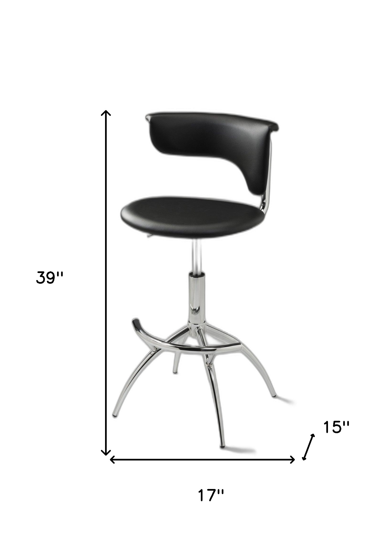 Comfortable enough to sit in for awhile, this set of two black and silver metal and faux leather low back adjustable height bar chairs will transcend the look of your room. A silver metal frame is finished off with a black faux leather seat that is the epitome of quality construction and design. Designed with a footrest for comfort and convenience. Not only good looking and stylish, this chair features a rectangle shaped seat and a low back for the ultimate in comfort and enjoyment. 39-inch h x 15-inch w x 17-inch d.