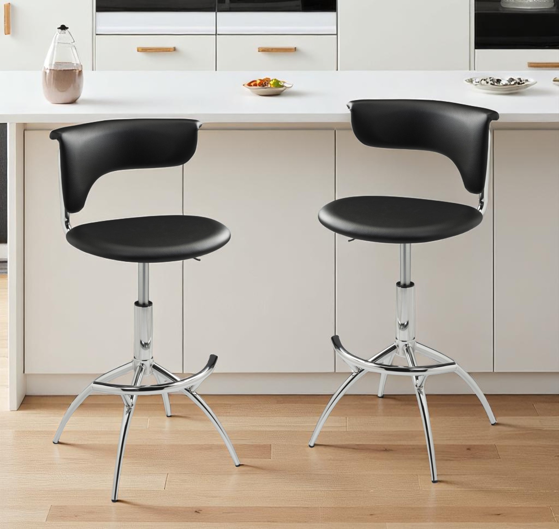 adjustable height bar chairs, low adjustable height bar chairs, height bar chairs, metal faux leather low adjustable, black silver metal faux leather |