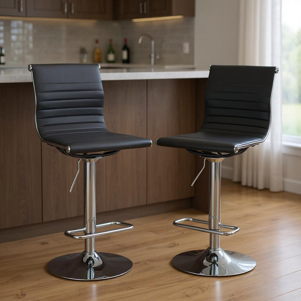 adjustable height bar chairs, low adjustable height bar chairs, set black silver faux leather, height bar chairs, faux leather metal low adjustable |