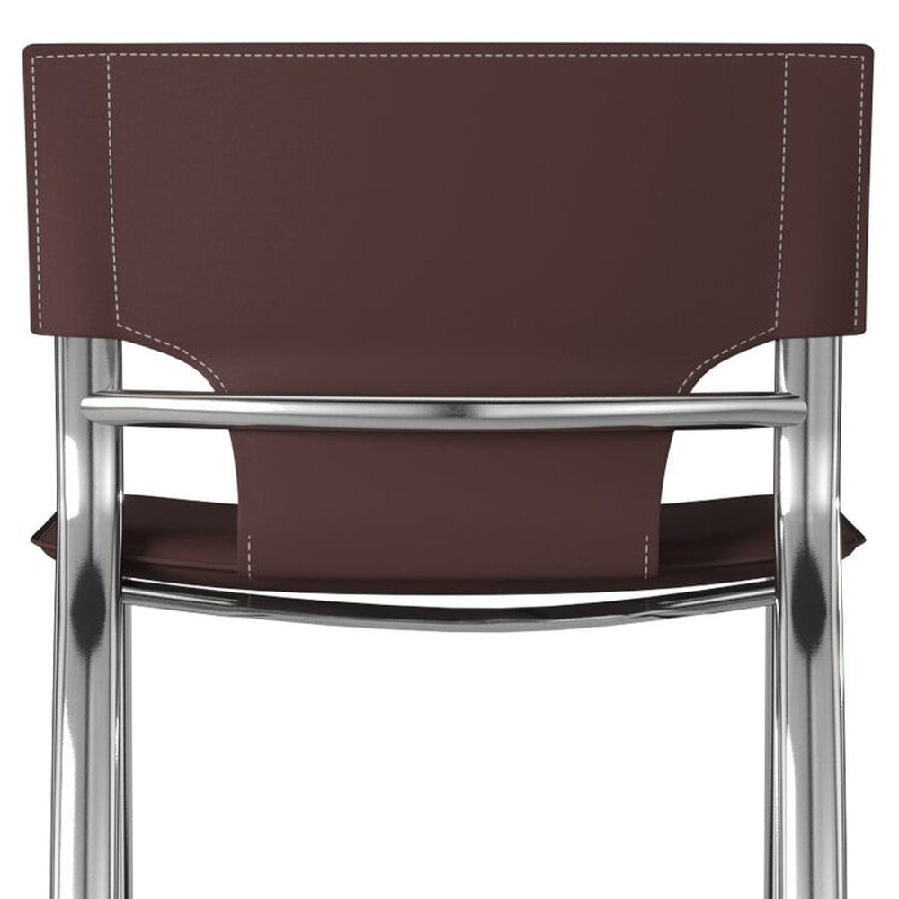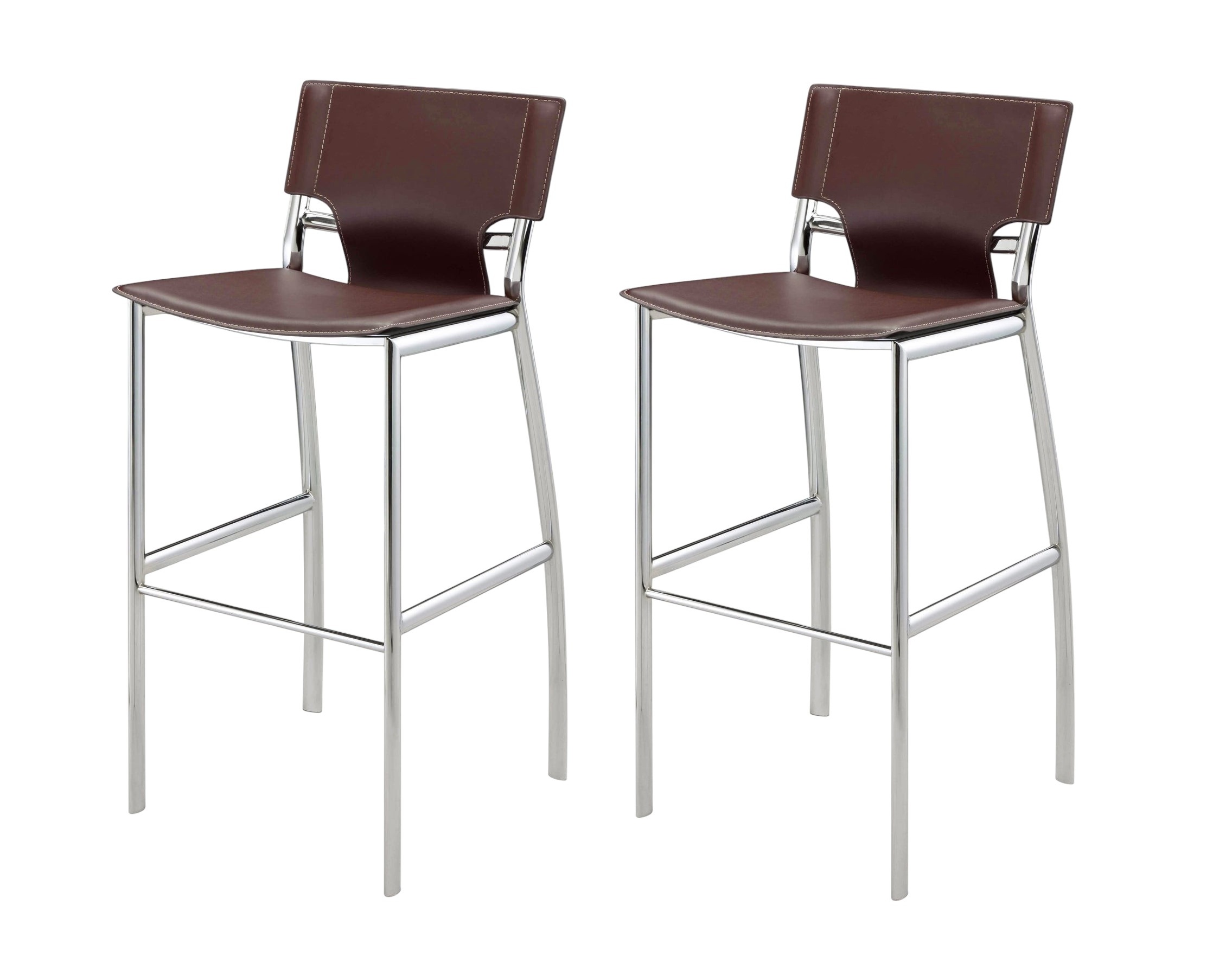 Comfortable enough to sit in for awhile, this set of two 25-inch brown and silver faux leather and metal low back counter height bar chairs will transcend the look of your room. The base of this stool is made from metal in a chrome silver color that creates a chic contrast with the faux leather. The rectangle shape of the seat combines with a stylish and unique low back to give this chair a comfortable and fashionable look. 36.00-inch h x 17.00-inch w x 17.00-inch d.