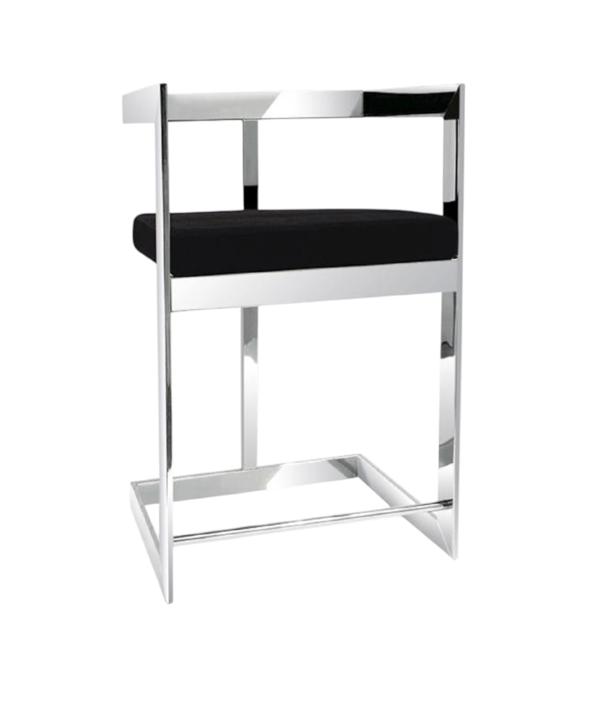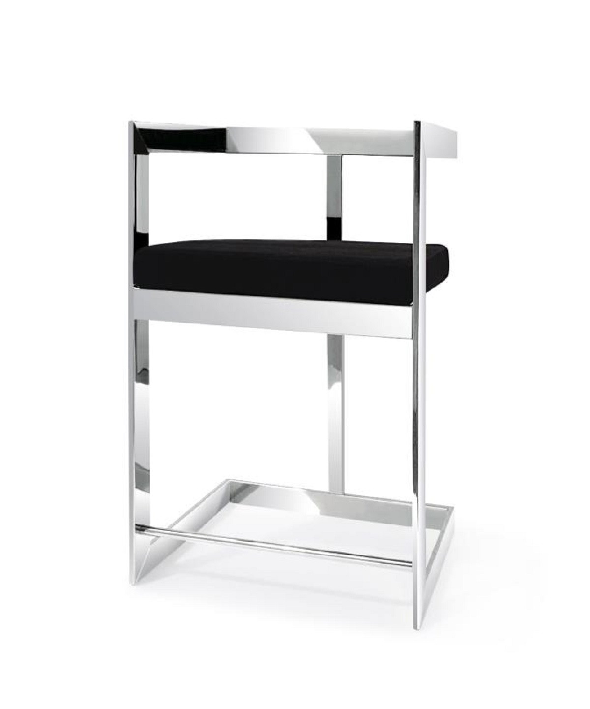 With this 30-inch black and silver velvet and stainless steel low back bar height bar chair you can add design and extra seating to your space. The black velvet seat of this stool is a nice contrast to the high quality, silver stainless steel of the base. Not only good looking and stylish, this chair features a rectangle shaped seat and a low_back for the ultimate in comfort and enjoyment. Designed with armrests for your comfort, this chair also features a footrest for comfort and convenience. 40-inch h x 19-inch w x 16-inch d.