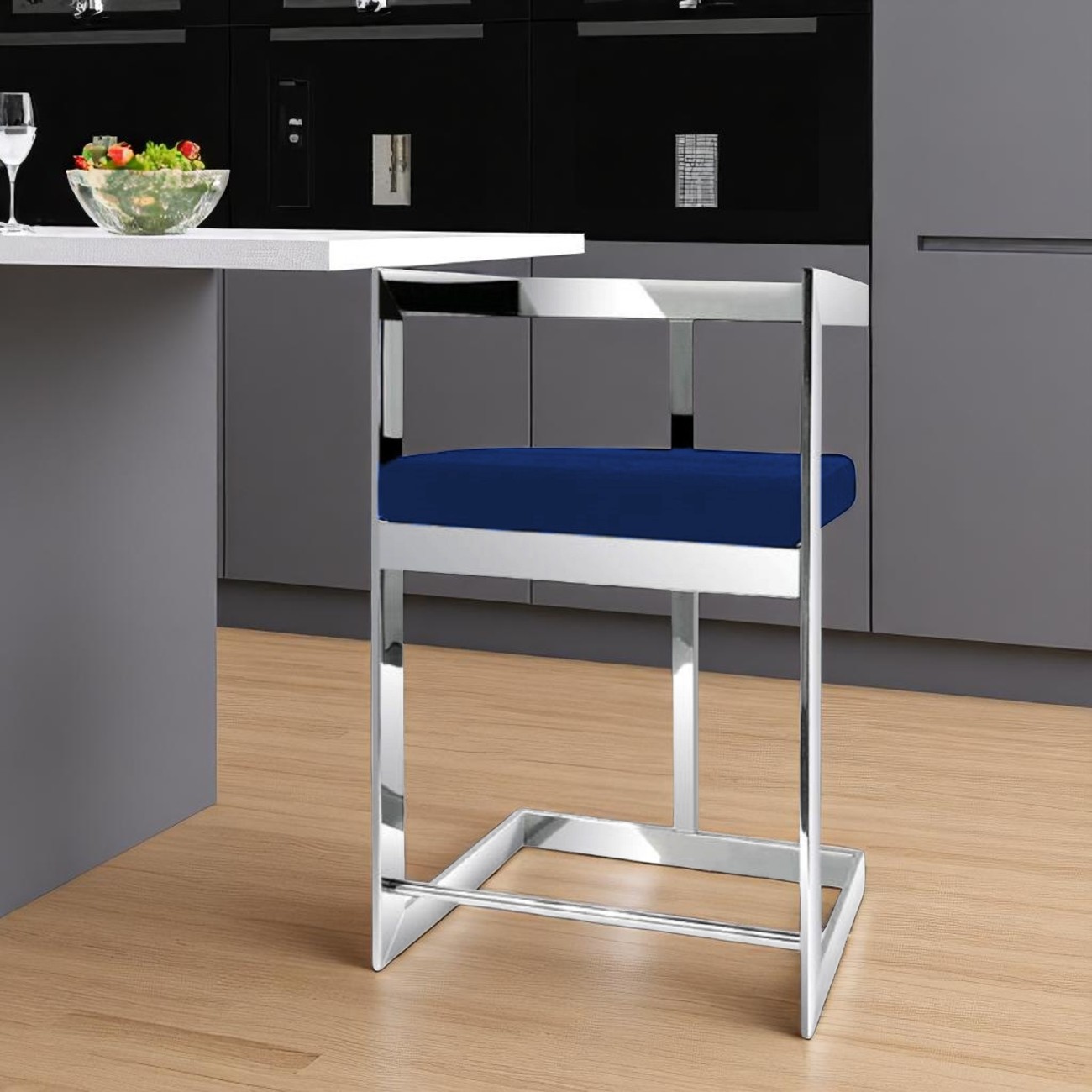counter height bar chair, low counter height bar chair, height bar chair, metal velvet low counter height, 26" blue silver metal velvet |
