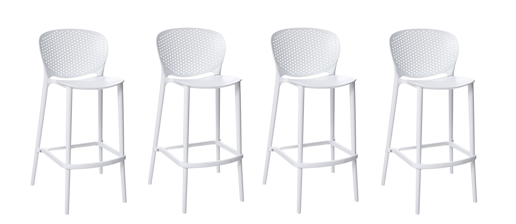 The perfect way to add some extra seating in your home, this set of four 26-inch white heavy duty plastic low back counter height bar chairs will elevate the look and vibe of your room. A sleek white monotone color gives this plastic and plastic stool a fresh and updated look. Not only good looking and stylish, this chair features a rectangle shaped seat and a low_back for the ultimate in comfort and enjoyment. Designed with a footrest for comfort and convenience. 35-inch h x 20-inch w x 21-inch d.