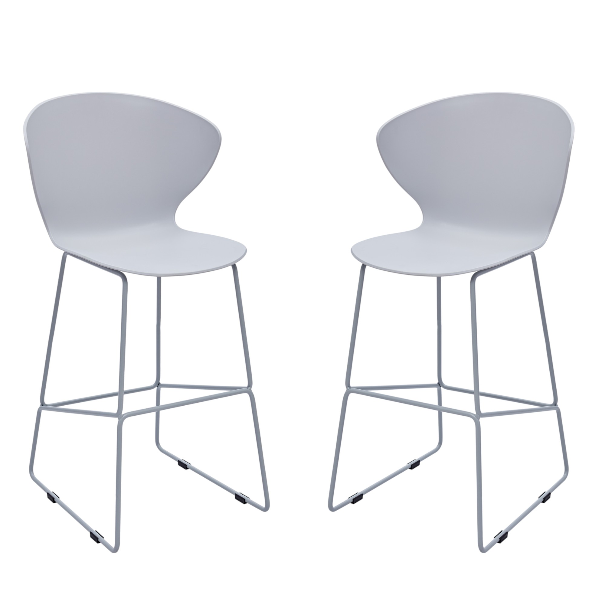 The perfect way to add some extra seating in your home, this set of two 26-inch gray heavy duty plastic and metal low back counter height bar chairs will elevate the look and vibe of your room. A sleek gray monotone color gives this metal and plastic stool a fresh and updated look. A low_back mixed with a rectangle shaped seat design makes this chair both comfortable and fashionable. Designed with a footrest for comfort and convenience. 40-inch h x 21-inch w x 19-inch d.
