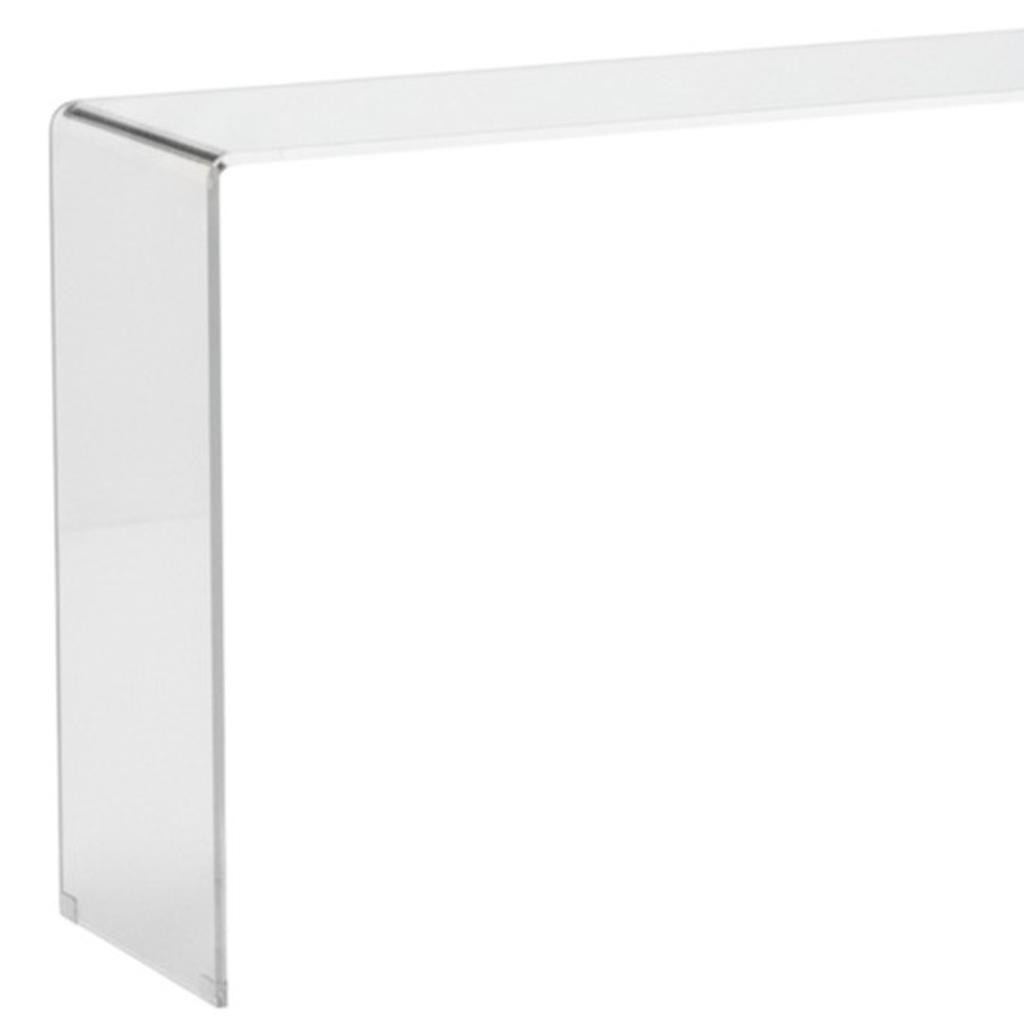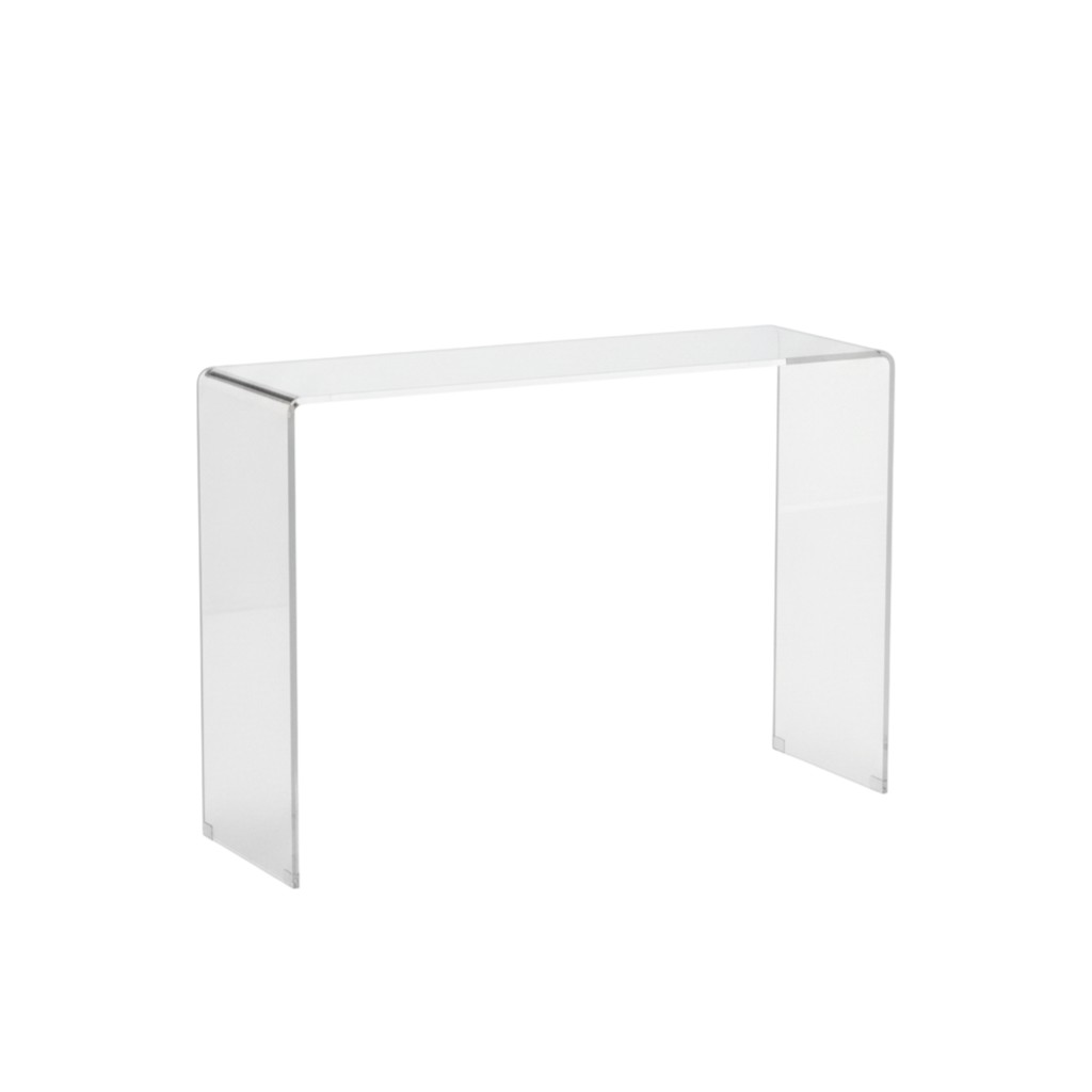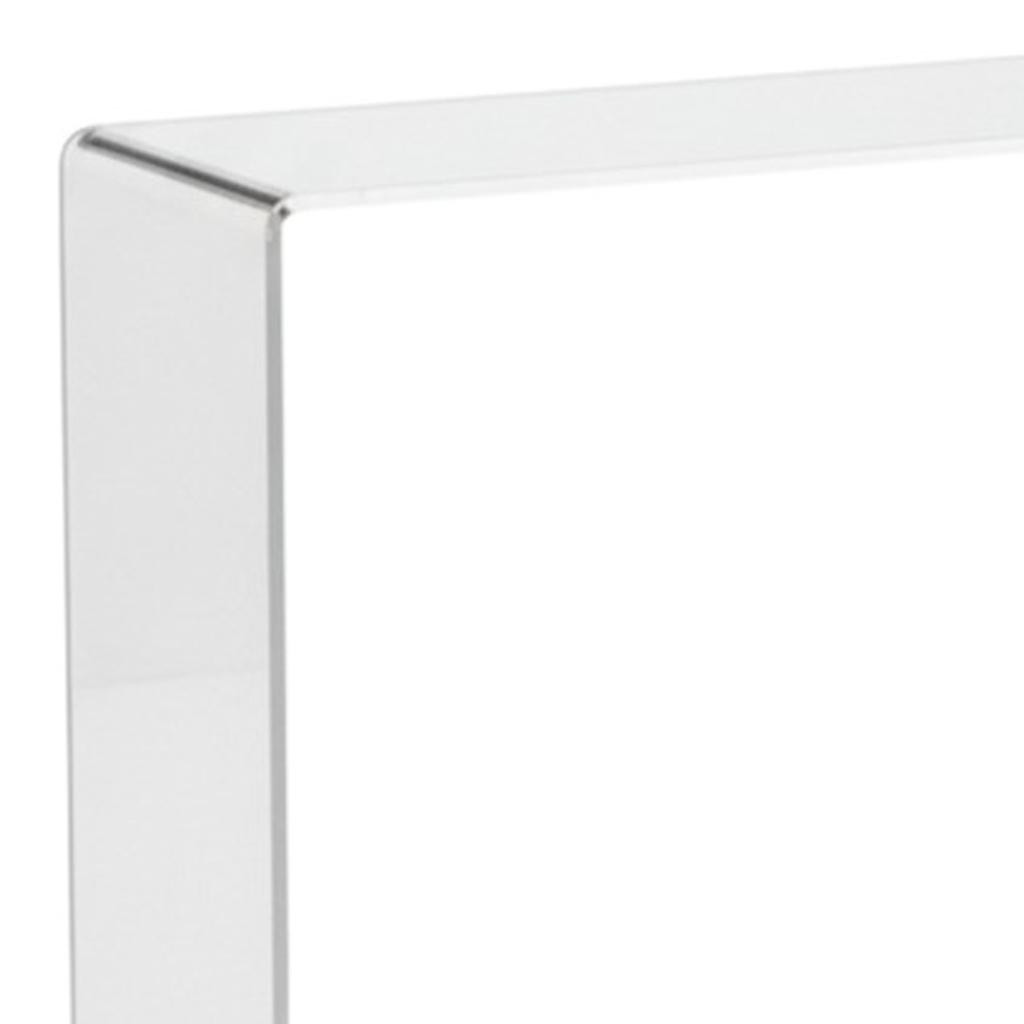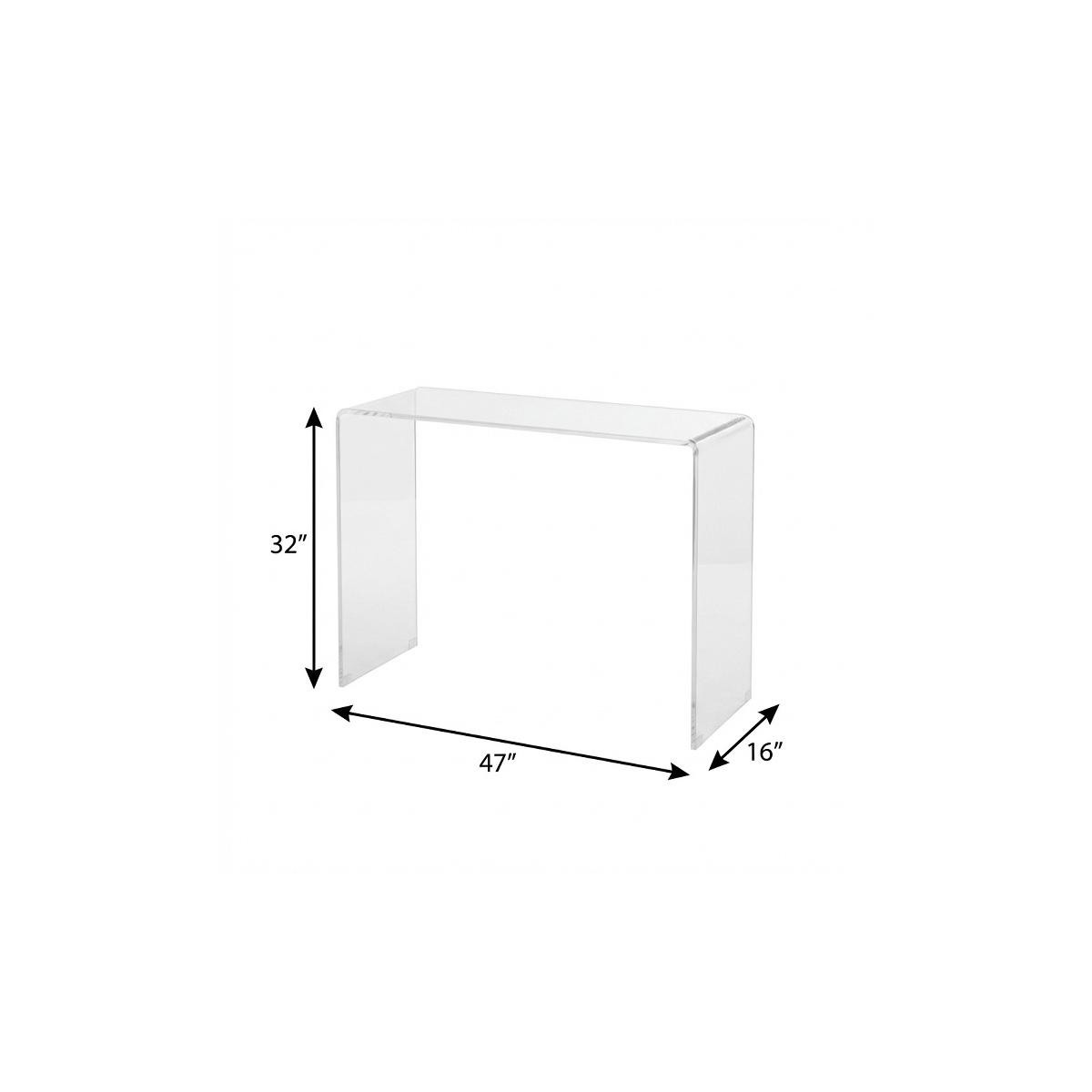 This 16-inch white glass block console table is a high-quality, long-lasting piece of furniture that you can enjoy for years to come. This rectangular table is ideal for up against the wall, can free stand in a room, or sit behind the sofa perfectly. The white glass top of this console table will immediately stand out and grab your guests' attention. This console table has a block style glass base, making it an ideal choice for a contemporary home. Versatile in use, console tables can be used for a variety of purposes in a variety of rooms and settings. 32-inch h x 16-inch w x 47-inch d.