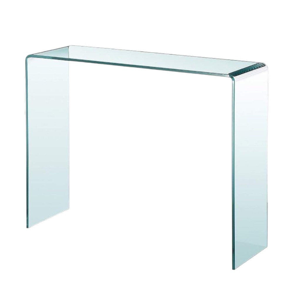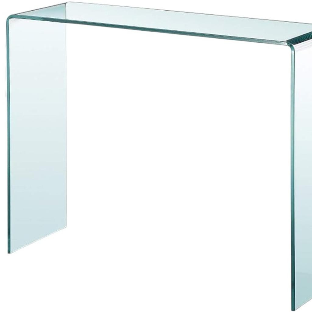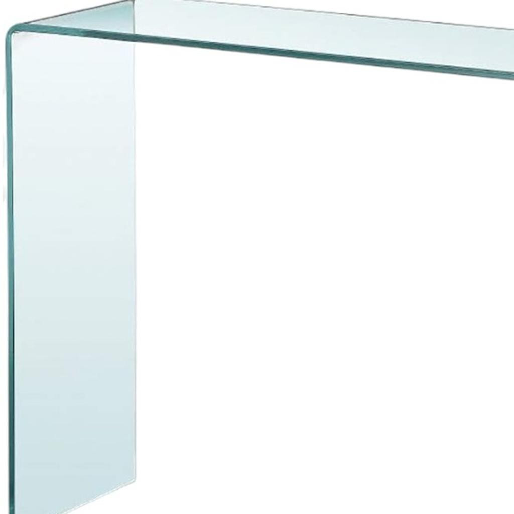 Make a statement in your entryway with our stunning 16-inch clear glass block console table. This rectangular table has clean lines and plenty of surface area. The clear glass top of this console table is a stunning and timeless choice that can transform any room into a visually captivating showcase. Your home will look elegant and pristine with the glass block base of this console table. Ideal for living rooms, bedrooms, home offices, and lounge areas, this console table is not only good looking but multi-functional and practical addition to your space. 32-inch h x 16-inch w x 43-inch d.
