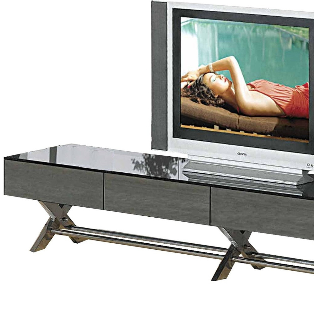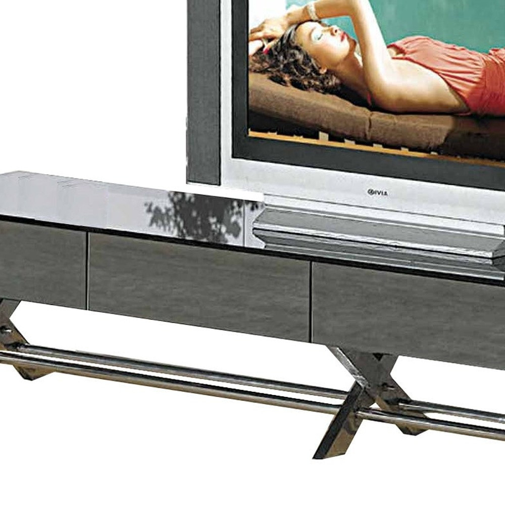 Create the ultimate blend of style, function, and design with this 79-inch gray glass cabinet enclosed storage mirrored tv stand. Designed to be sturdy and long lasting, this versatile furniture piece is crafted from durable glass and features a contemporary design style. Convert your room into a special place with your favorite collectibles and tv accessories that is suitable for living room, bedroom, or office. 16-inch h x 79-inch w x 18-inch d.
