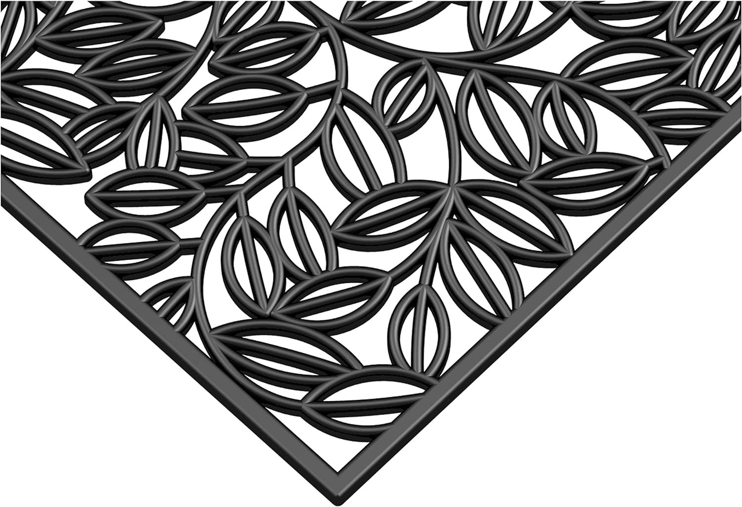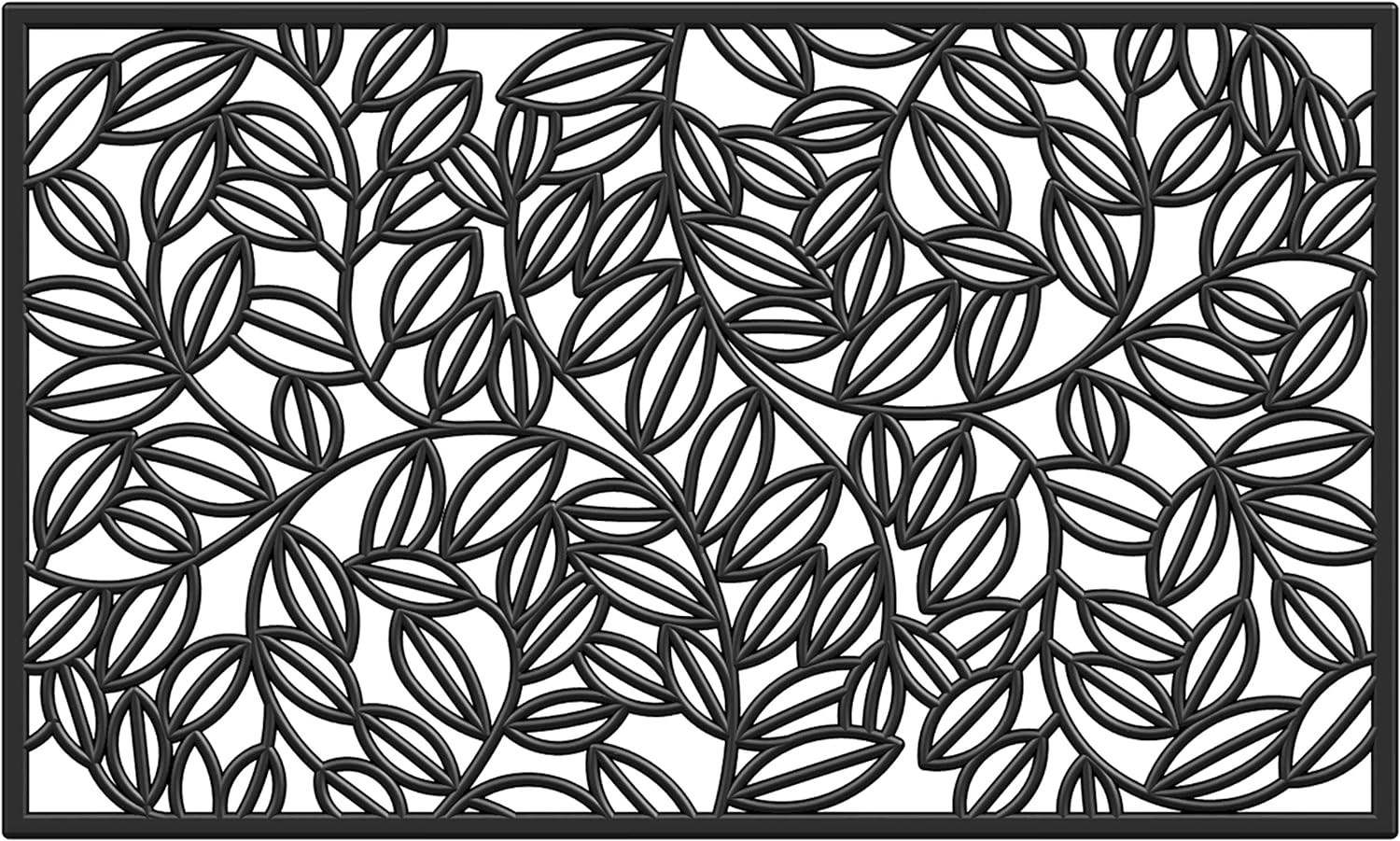 Ready to withstand heavy foot traffic, this 24-inch x 36-inch black rubber botanical leaves outdoor door mat is an ideal option for the front door or entrance way of your home or business. Crafted from rubber, this mat is not only functional but is a visually appealing accessory to welcome people to your home or business. Add this decorative mat to create a practical yet inviting welcome to all who enter. 24-inch H x 36-inch W x 0.5-inch D