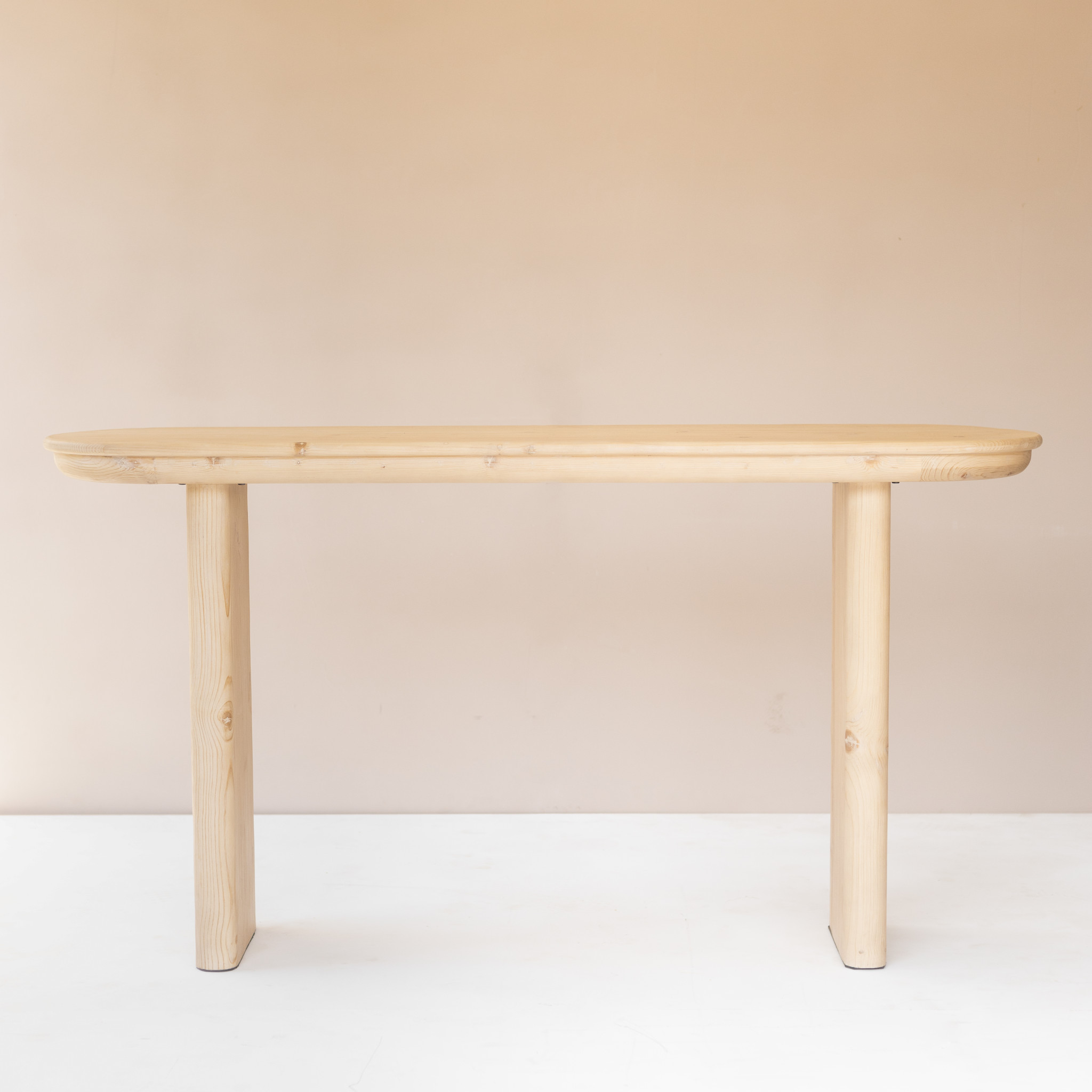 This 60-inch natural solid wood oval console table is a high-quality, long-lasting piece of furniture that you can enjoy for years to come. The oval shape of this table will soften the flow of any room. Crafted from genuine pine wood that boasts a light and natural coloration complete with knots and grains that make natural wood beautiful, this piece will add some clean and modern elegance to your space. Ideal for living rooms, bedrooms, home offices, and lounge areas, this console table is not only good looking but multi-functional and practical addition to your space. 30-inch h x 60-inch w x 16-inch d.
