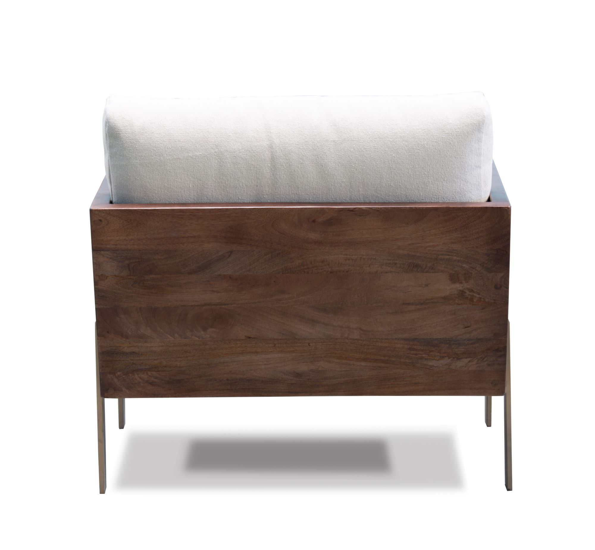 A mix of form and function, this 31-inch brown and white solid wood and genuine leather accent chair will bring a good looking and usable accent to your space. Giving the chair stability and structure, the frame is constructed with high quality genuine mango wood and includes stylish angular armrests. For a bit of luxury and your seating comfort, the back and seat cushions are upholstered in soft and supple top grain leather. The legs are metal completing the look and giving this chair an overall rich and inviting design. 22-inch H x 31-inch W x 31-inch D