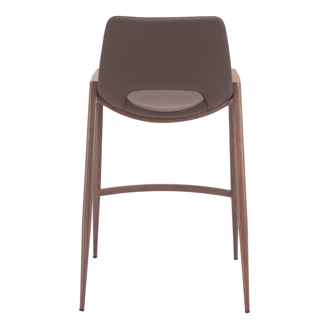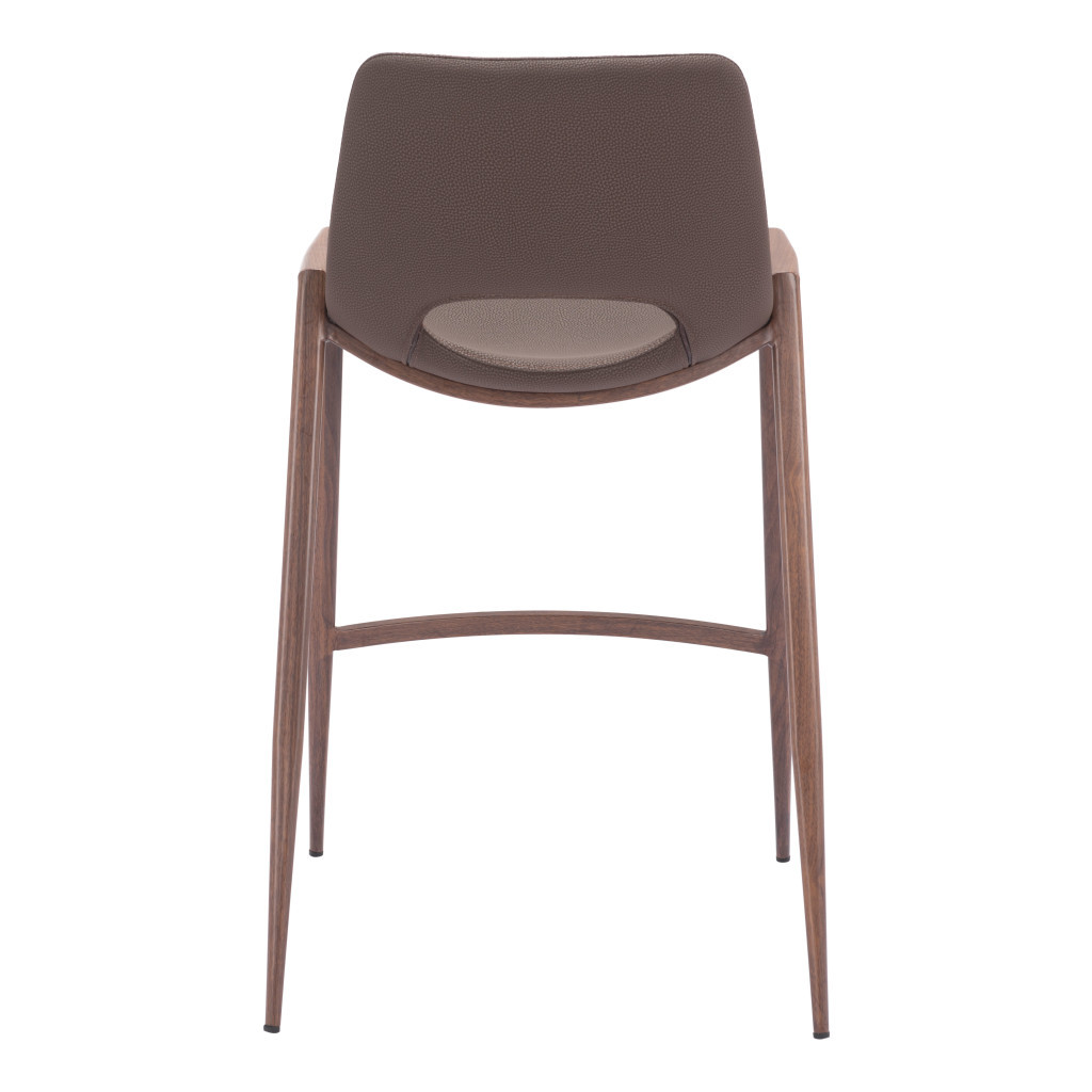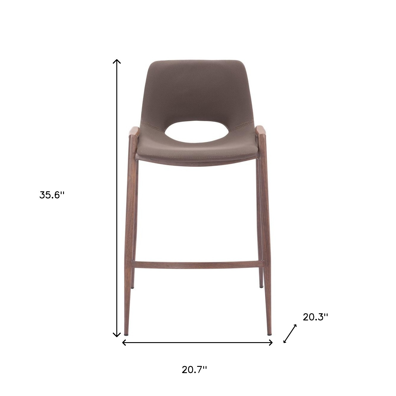 Comfortable enough to sit in for awhile, this set of two 26-inch brown faux leather and steel low back counter height bar chairs will transcend the look of your room. A solid brown steel frame is finished off with a matching brown faux leather seat, giving this chair a chic monotone look. The bucket shape of the seat combines with a low back to give this chair a comfortable and fashionable look. Designed with a footrest for comfort and convenience. 35.6-inch H x 20.3-inch W x 20.7-inch D