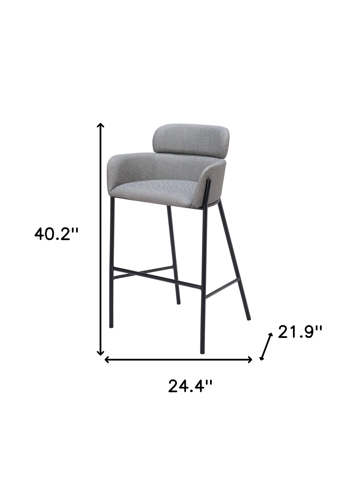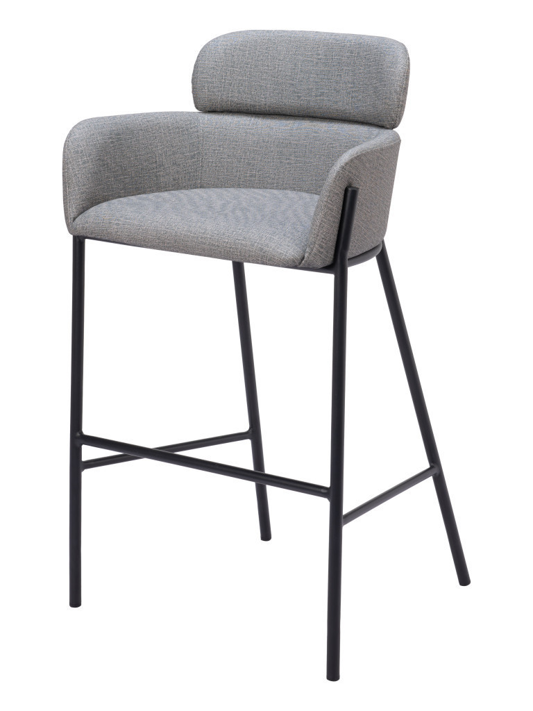 With this 30-inch slate gray and black fabric and steel bar height bar chair you can add design and extra seating to your space. The slate gray fabric seat of this stool is a nice contrast to the high quality, black steel of the base. The bucket shape of the seat combines with a full back to give this chair a comfortable and fashionable look. Designed with armrests for your comfort, this chair also features a footrest for comfort and convenience. 40.2-inch H x 24.4-inch W x 21.9-inch D