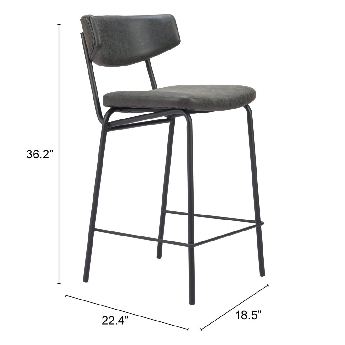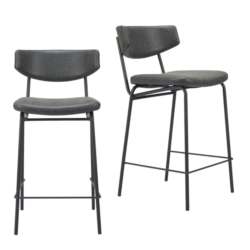 Bring a trendy bar vibe to your space, with this set of two 30-inch black faux leather and steel low back bar height bar chairs. A sleek black monotone color gives this steel and upholstered stool a fresh and updated look. Not only good looking and stylish, this chair features a bucket shaped seat and a low back for the ultimate in comfort and enjoyment. 36.20-inch h x 18.50-inch w x 22.40-inch d.
