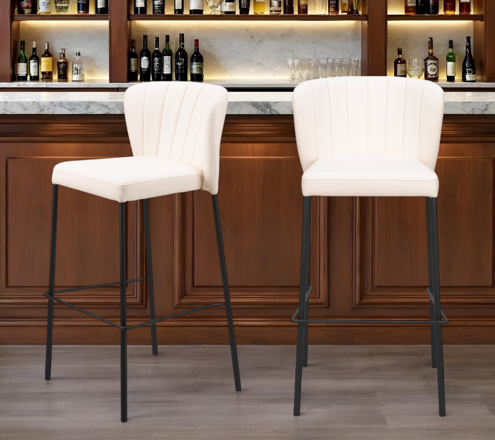 29" cream black faux leather, set 29" cream black faux, height bar chairs, steel bar height bar chairs, faux leather steel bar |