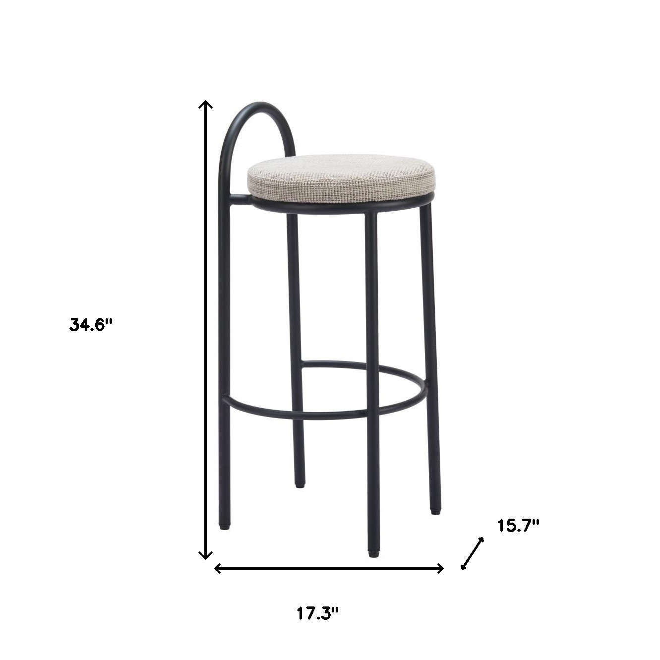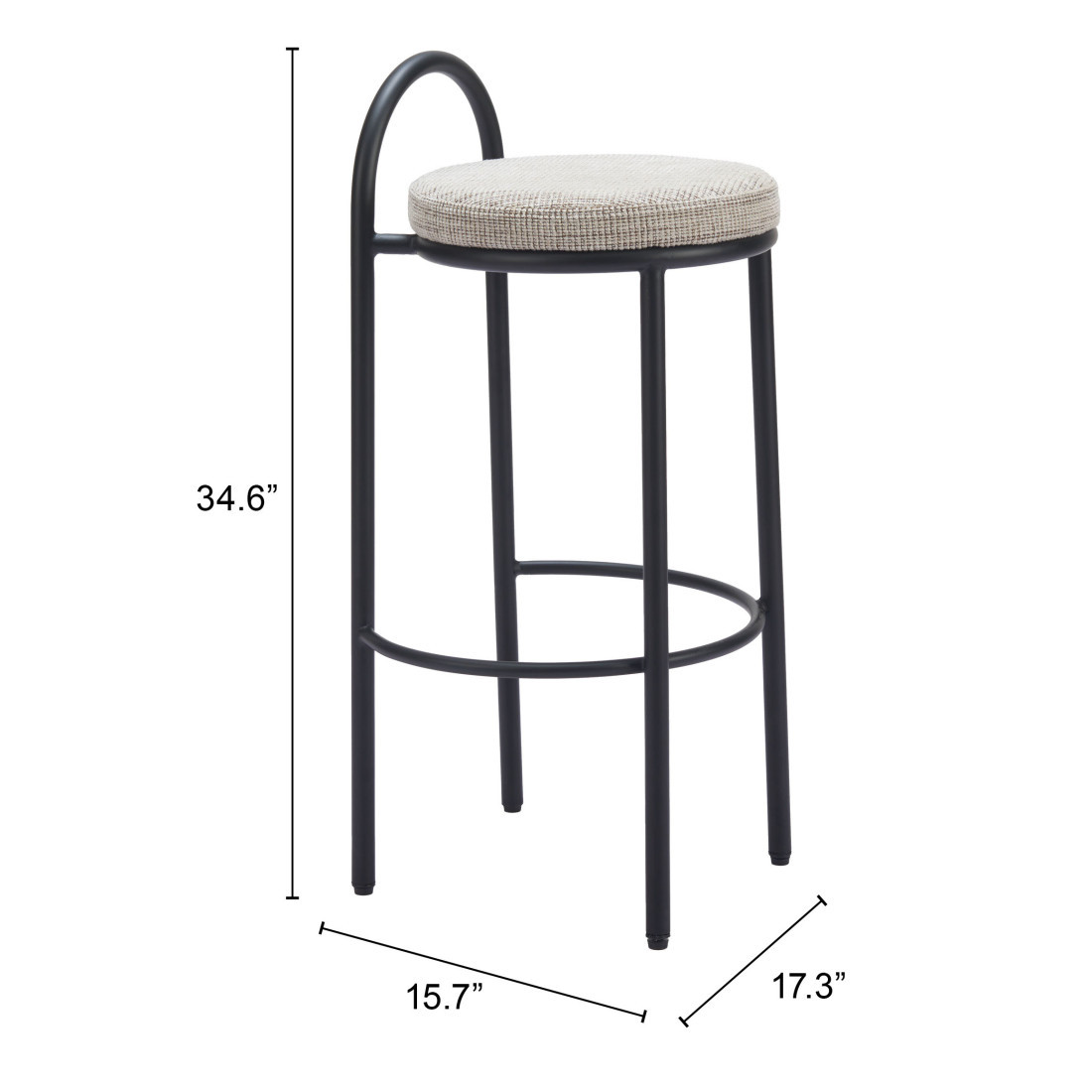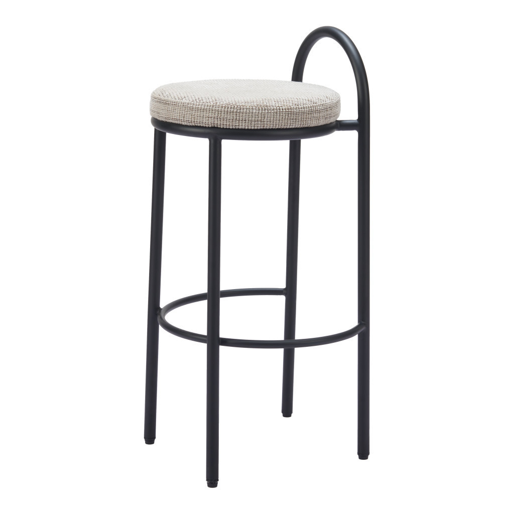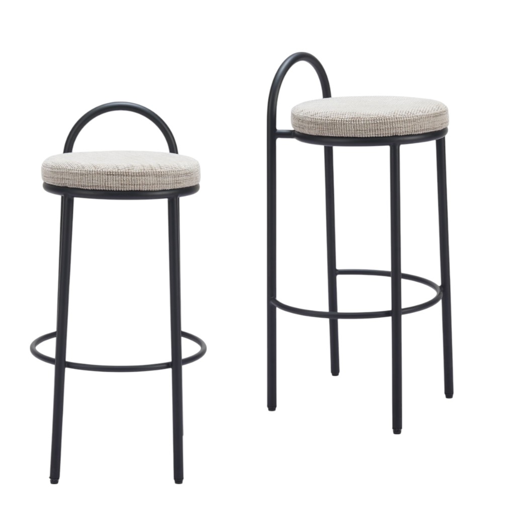 With this set of two 30-inch beige and black chenille and steel low back bar height bar chairs you can add design and extra seating to your space. A black steel frame is finished off with a beige upholstered seat that is the epitome of quality construction and design. The bucket shape of the seat combines with a low back to give this chair a comfortable and fashionable look. 34.60-inch h x 17.30-inch w x 15.70-inch d.