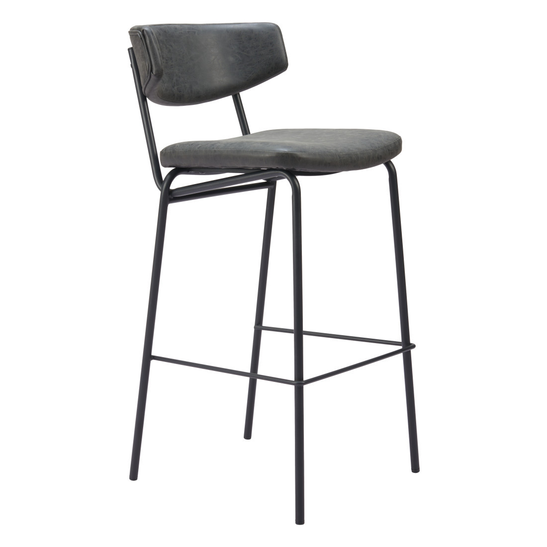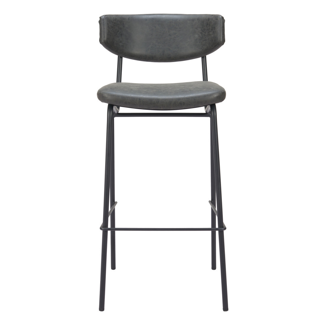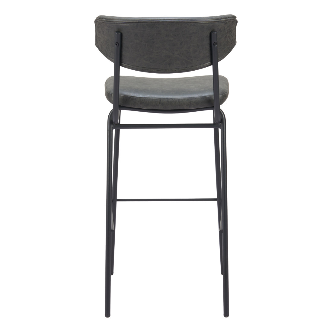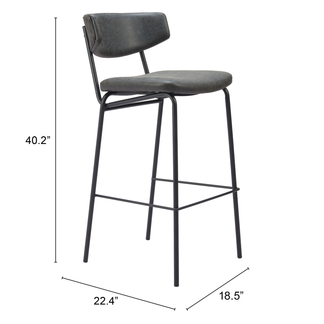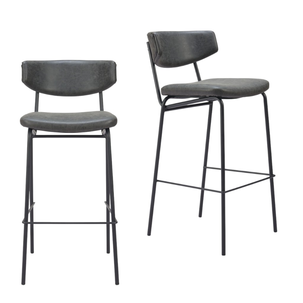 This set of two 26-inch black faux leather and steel low back counter height bar chairs will be the perfect way to add some cool design and utility to your space similar to what you find in your favorite cafes or pubs. A sleek black monotone color gives this steel and upholstered stool a fresh and updated look. A low back mixed with a bucket shaped seat design makes this chair both comfortable and fashionable. 40.20-inch h x 18.50-inch w x 22.40-inch d.