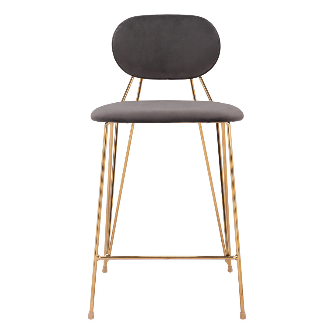 With this set of two 26-inch gray and gold velvet and steel low back counter height bar chairs you can add design and extra seating to your space. Quality construction from gold steel combines with gray upholstered to give this stool a fresh and updated look. A low back mixed with a bucket shaped seat design makes this chair both comfortable and fashionable. 36.20-inch h x 19.30-inch w x 20.50-inch d.