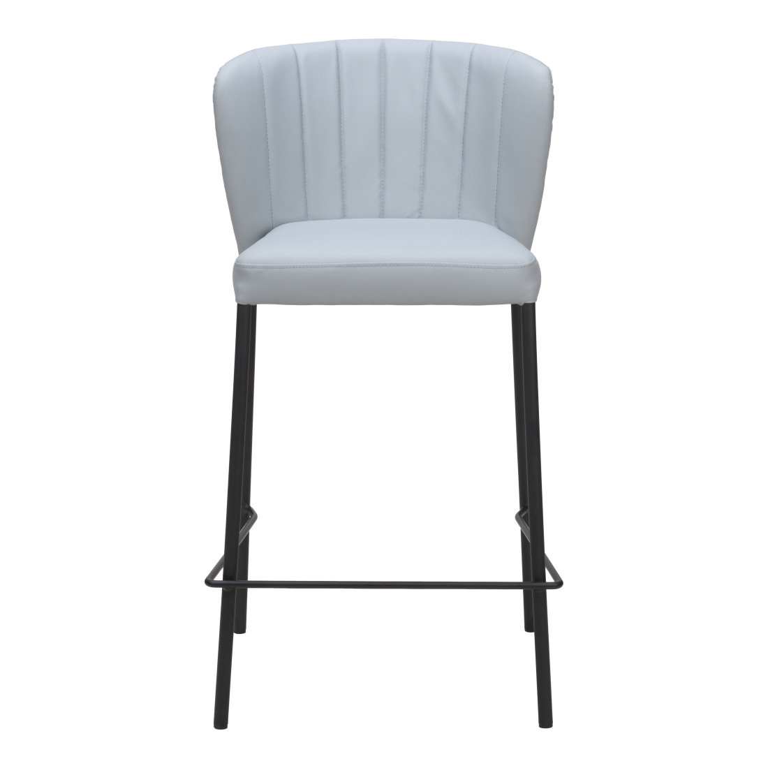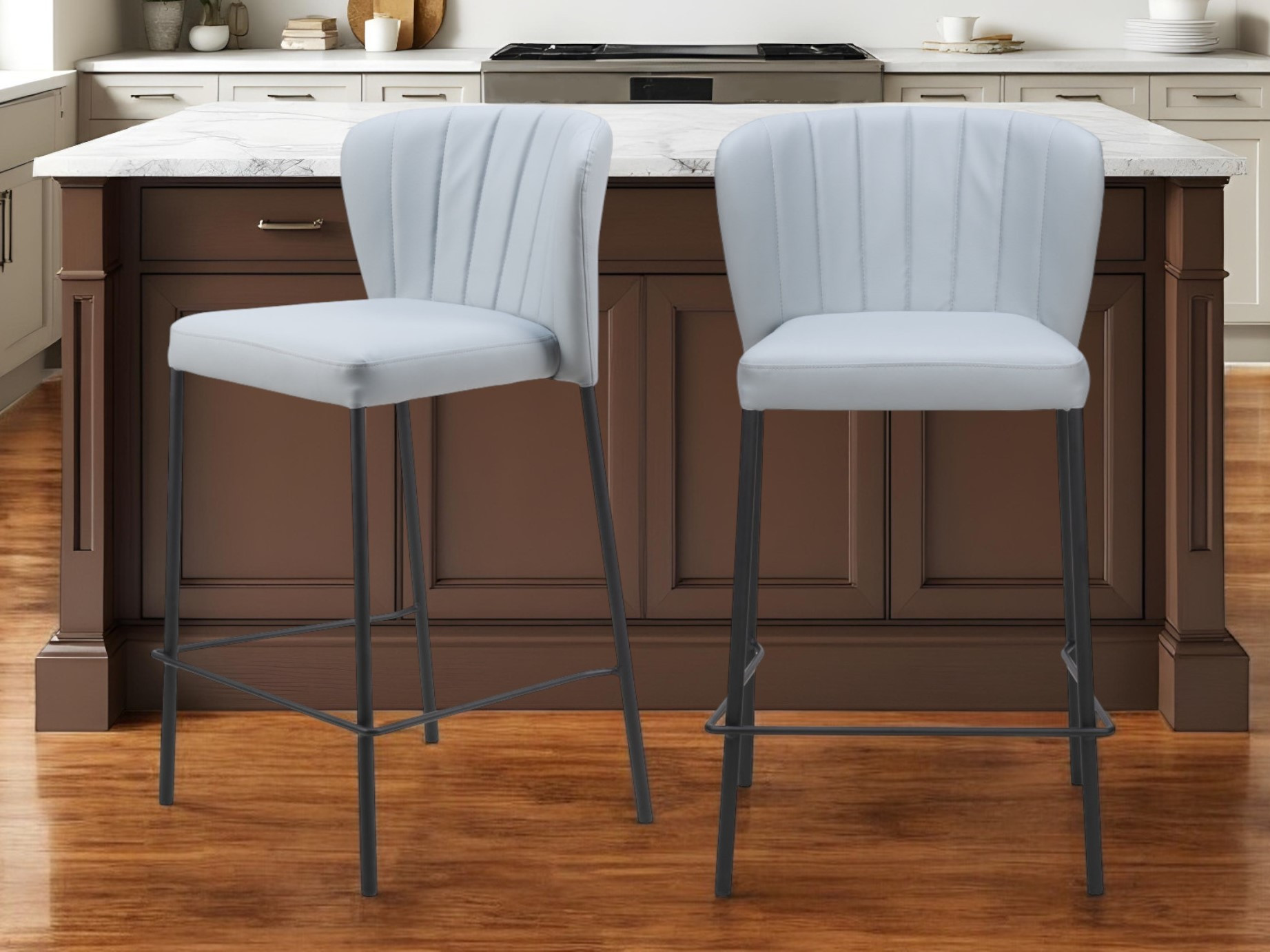 Comfortable enough to sit in for awhile, this set of two 26-inch gray and black faux leather and steel counter height bar chairs will transcend the look of your room. The gray faux leather seat of this stool is a nice contrast to the high quality, black steel of the base. The bucket shape of the seat combines with a full back to give this chair a comfortable and fashionable look. Designed with a footrest for comfort and convenience. 35-inch H x 18.9-inch W x 19.7-inch D