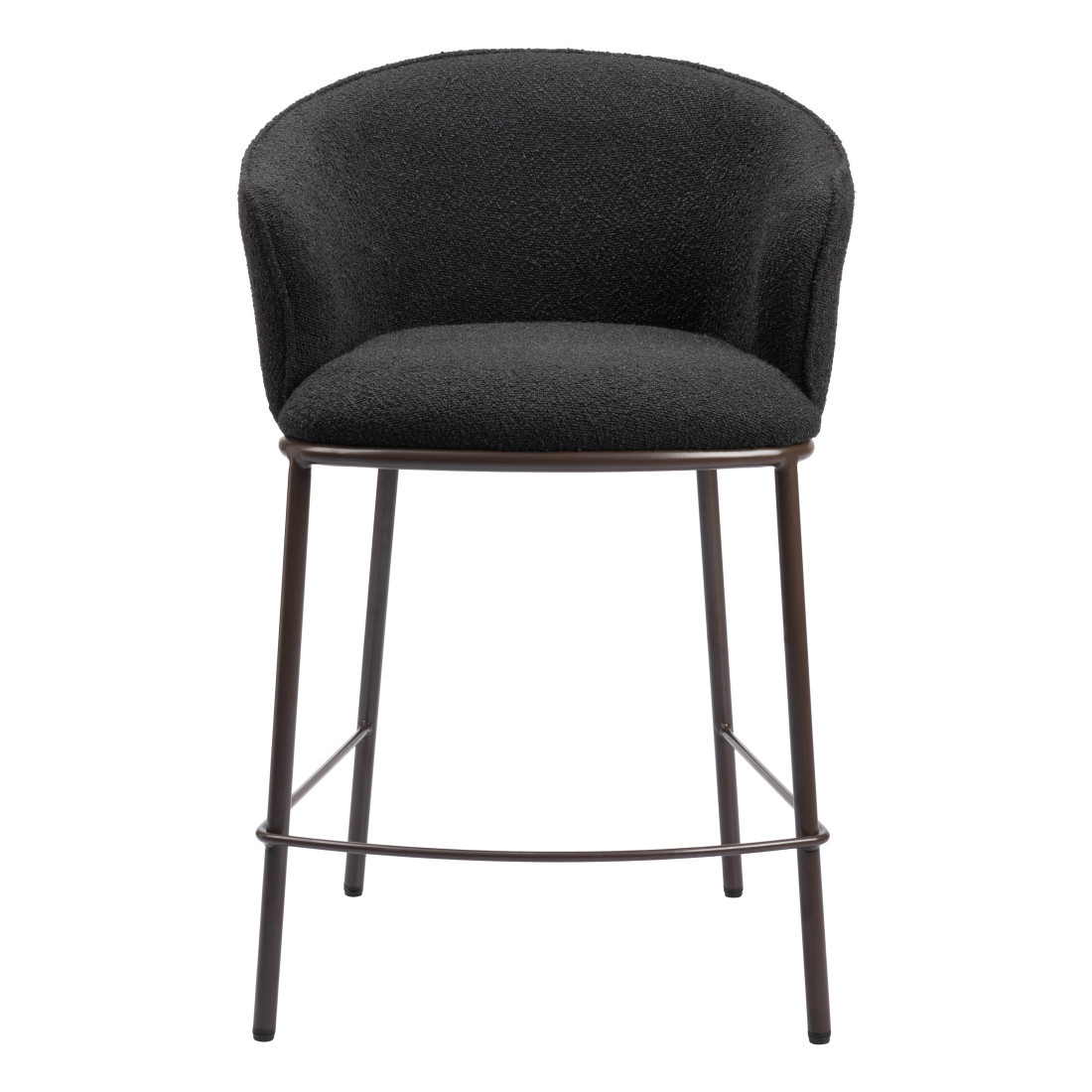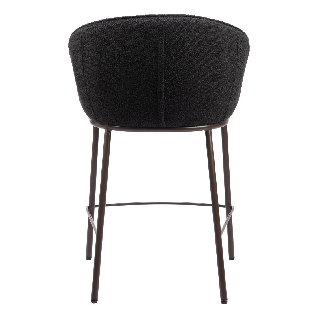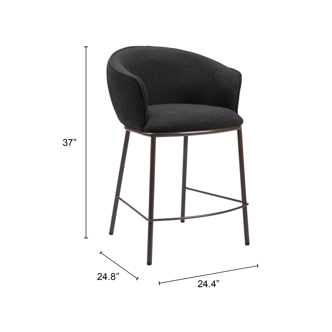 Bring a trendy bar vibe to your space, with this 26-inch black and bronze shearling and steel counter height bar chair. The black shearling seat of this stool is a nice contrast to the high quality, bronze steel of the base. The bucket shape of the seat combines with a full_back to give this chair a comfortable and fashionable look. Designed with armrests for your comfort, this chair also features a footrest for comfort and convenience. 37-inch h x 24.4-inch w x 24-inch d.