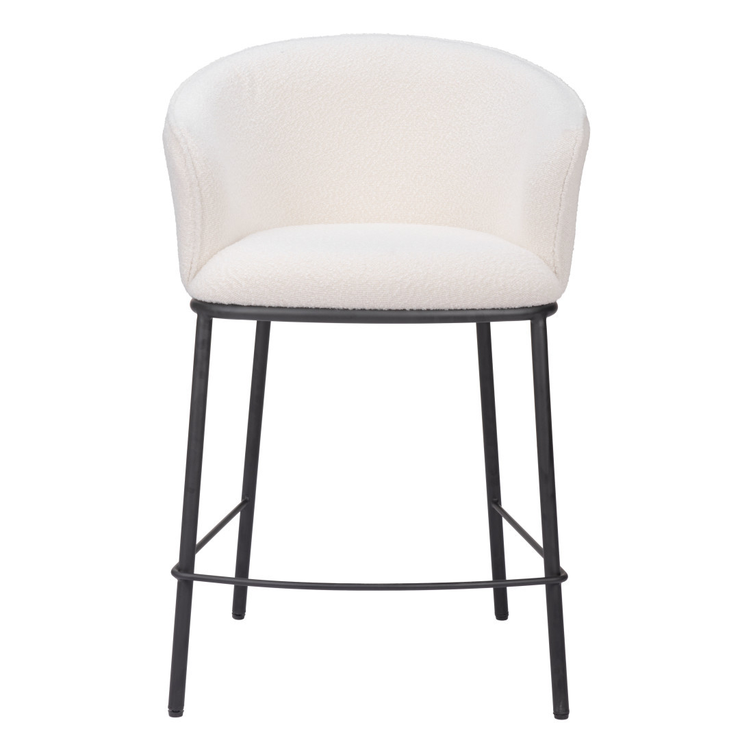 The perfect way to add some extra seating in your home, this 26-inch ivory and black shearling and steel counter height bar chair will elevate the look and vibe of your room. The base of this stool is made from steel in a black color that is a nice contrast to the ivory shearling seat. The bucket shape of the seat combines with a full back to give this chair a comfortable and fashionable look. Designed with armrests for your comfort, this chair also features a footrest for comfort and convenience. 37-inch H x 24.4-inch W x 24-inch D