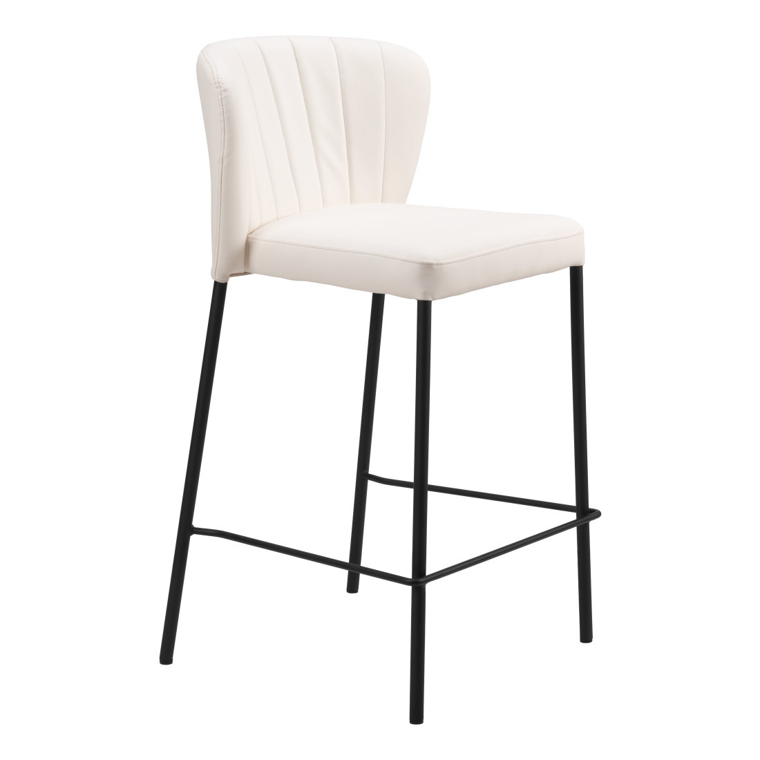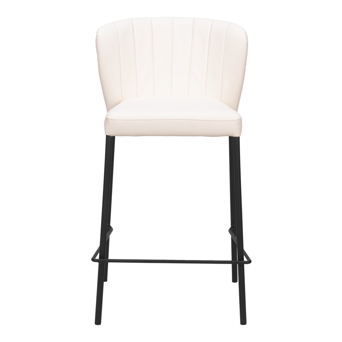 With this set of two 26-inch cream and black faux leather and steel counter height bar chairs you can add design and extra seating to your space. A black steel frame is finished off with a cream faux leather seat that is the epitome of quality construction and design. Not only good looking and stylish, this chair features a bucket shaped seat and a full back for the ultimate in comfort and enjoyment. Designed with a footrest for comfort and convenience. 35-inch H x 18.9-inch W x 19.7-inch D