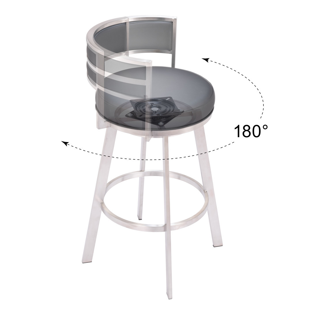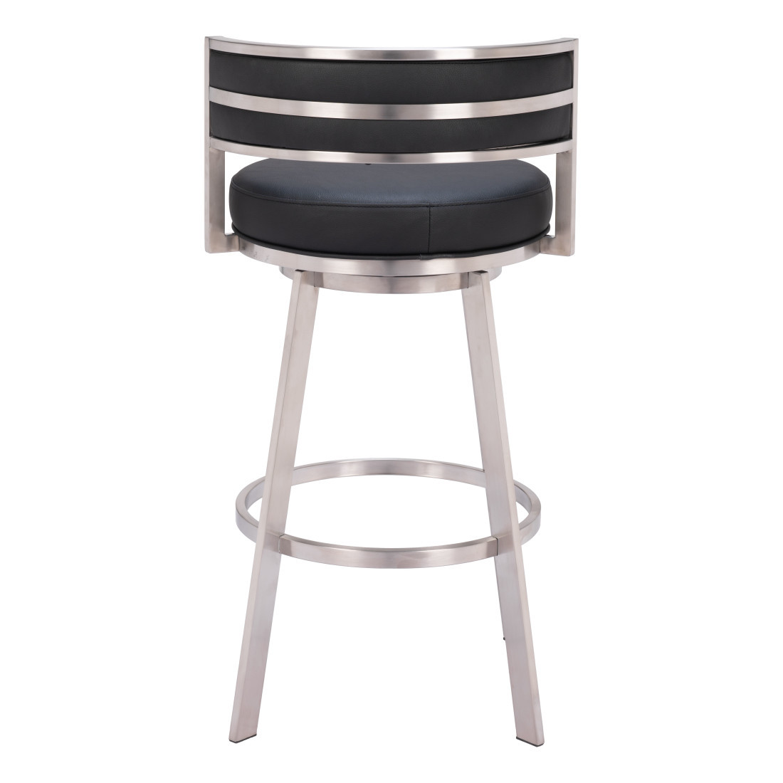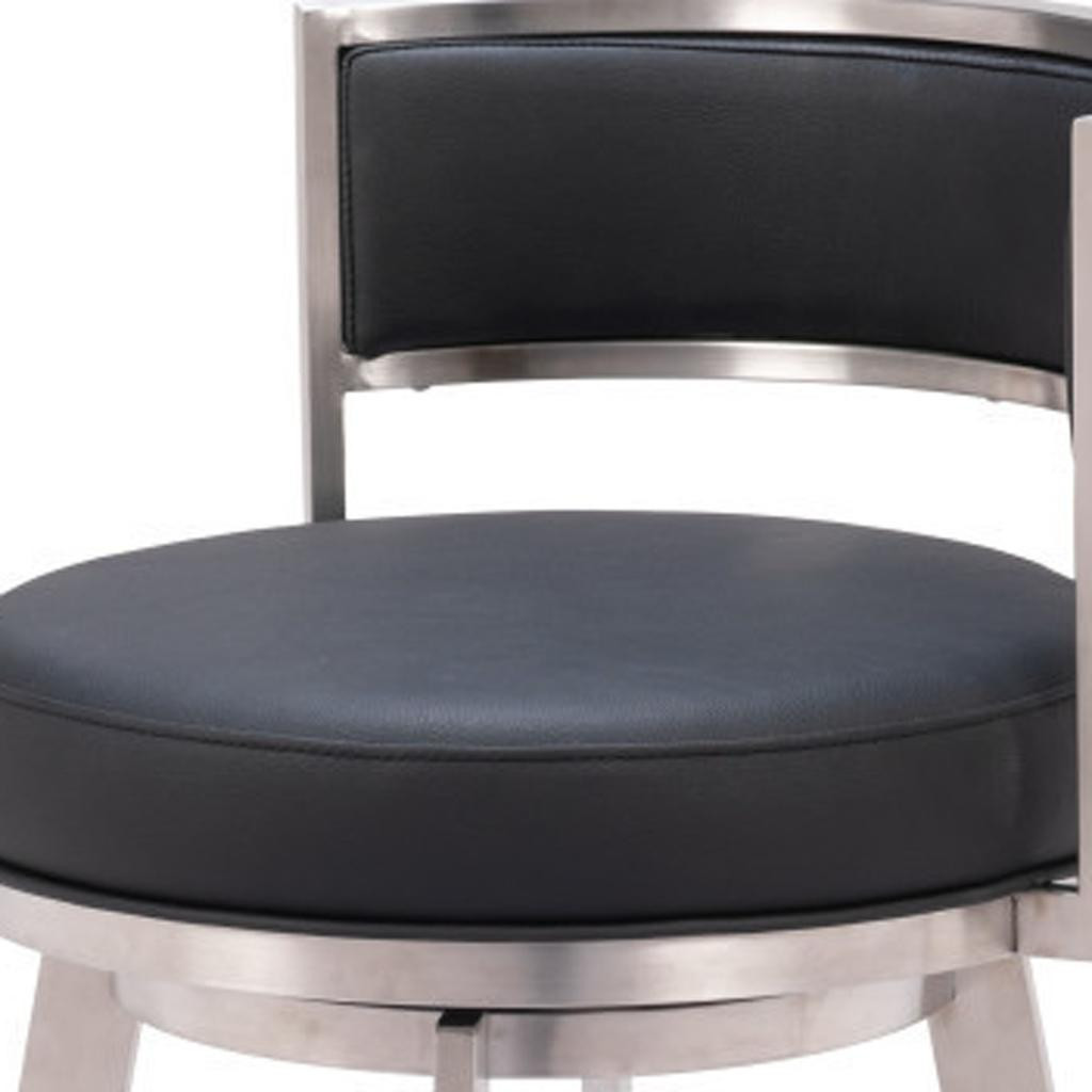 height swivel bar chair, 31" black silver faux leather, bar height swivel bar chair, swivel bar chair, leather stainless steel low bar |