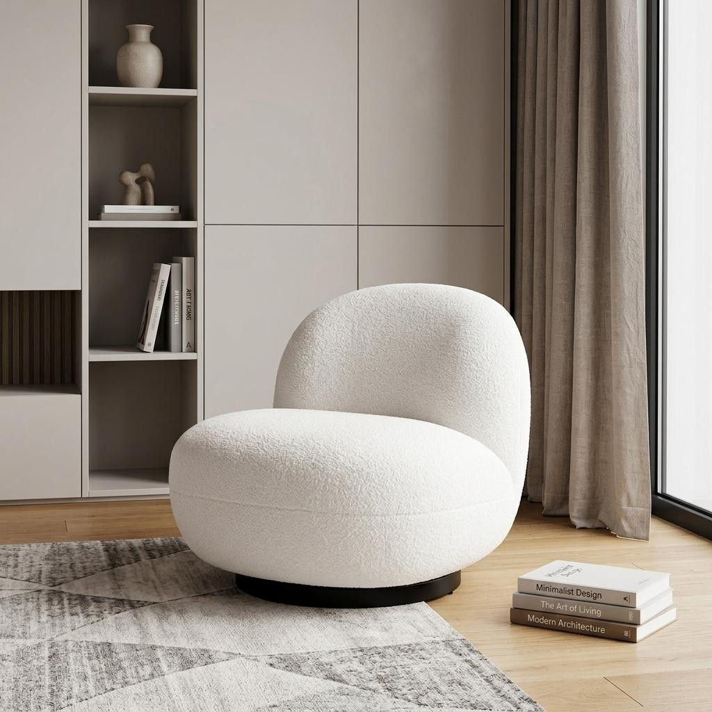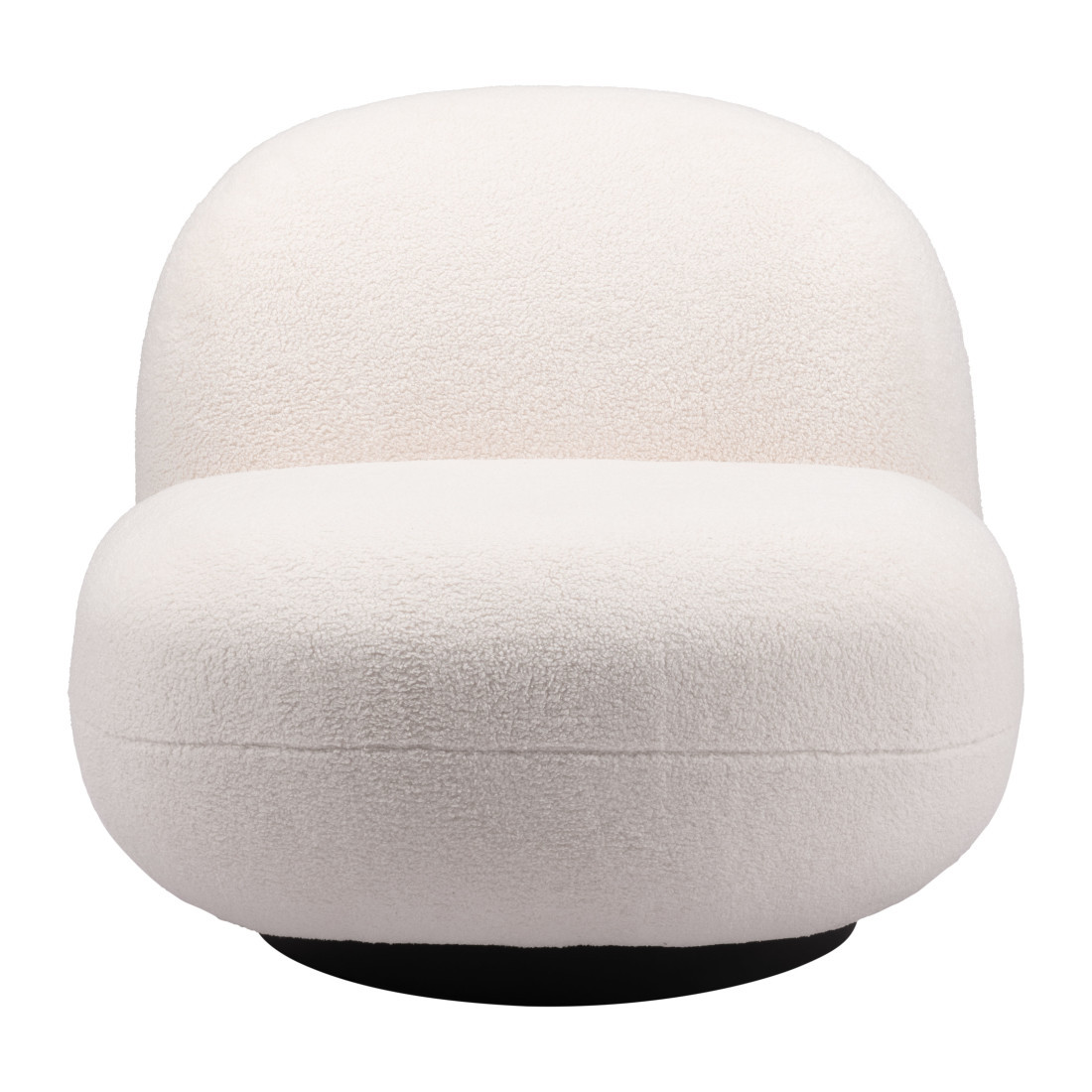 This 30-inch cream and black faux shearling and upholstered slipper chair is the perfect decorative yet functional accessory for your home. This gorgeous solid color cream slipper chair is masterfully upholstered in durable faux shearling and 100% polyester. The high quality manufactured wood inner frame flaunts a fixed back that is complimented by soft and comfortable cushioning. 26.8-inch h x 29.9-inch w x 31.5-inch d.