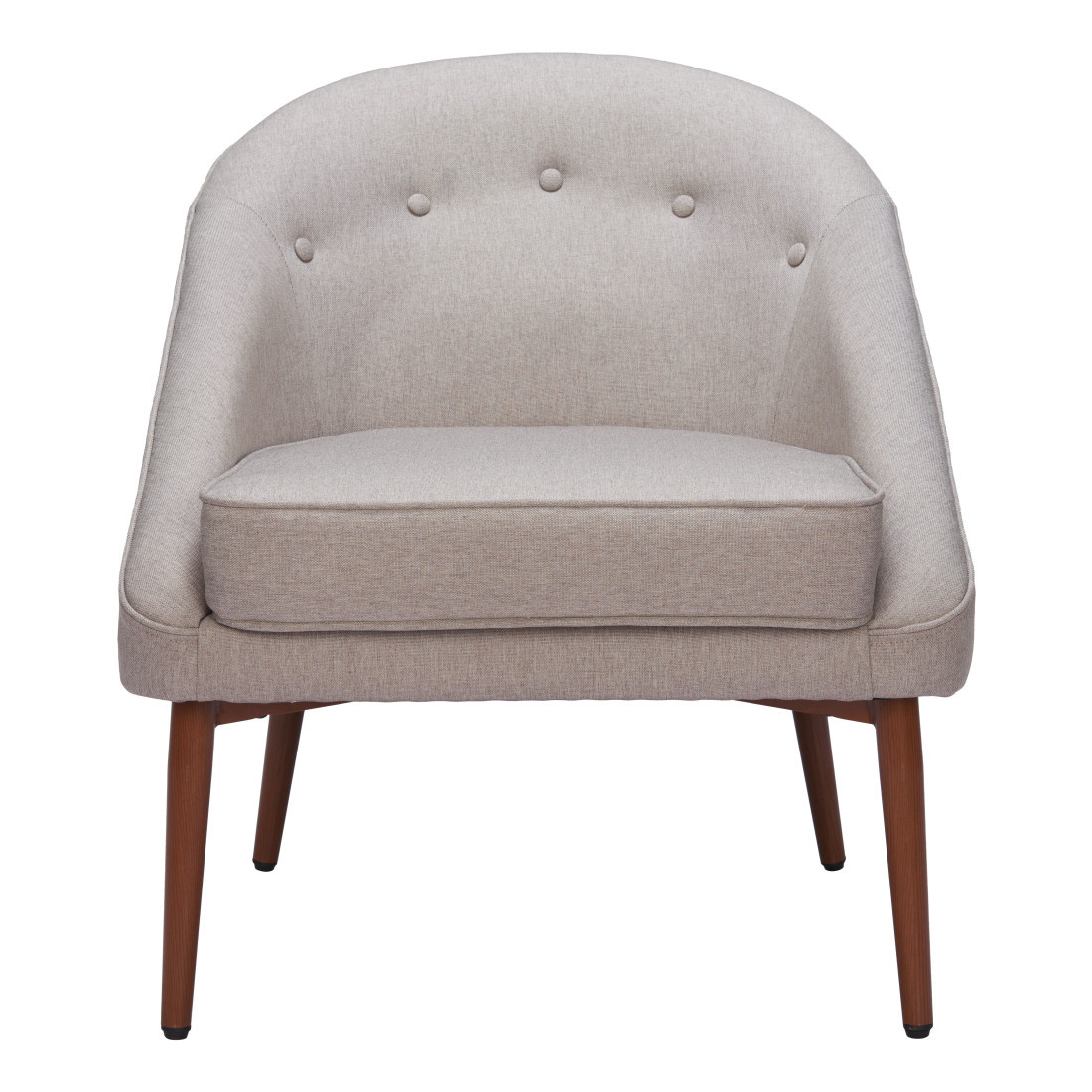 Fill your living room, bedroom, or office with fashionable seating options with this 28-inch gray and brown fabric and upholstered tufted barrel chair. Built to last this barrel chair is finished in solid gray fabric and 100% polyester to give your room a great update. Giving the chair stability and structure, the inner frame is constructed with high quality manufactured wood and features a tufted back that comes complete with soft and comfortable cushioning. The tufted cushions add fine designer detailing. 31.7-inch h x 28.3-inch w x 30.3-inch d.