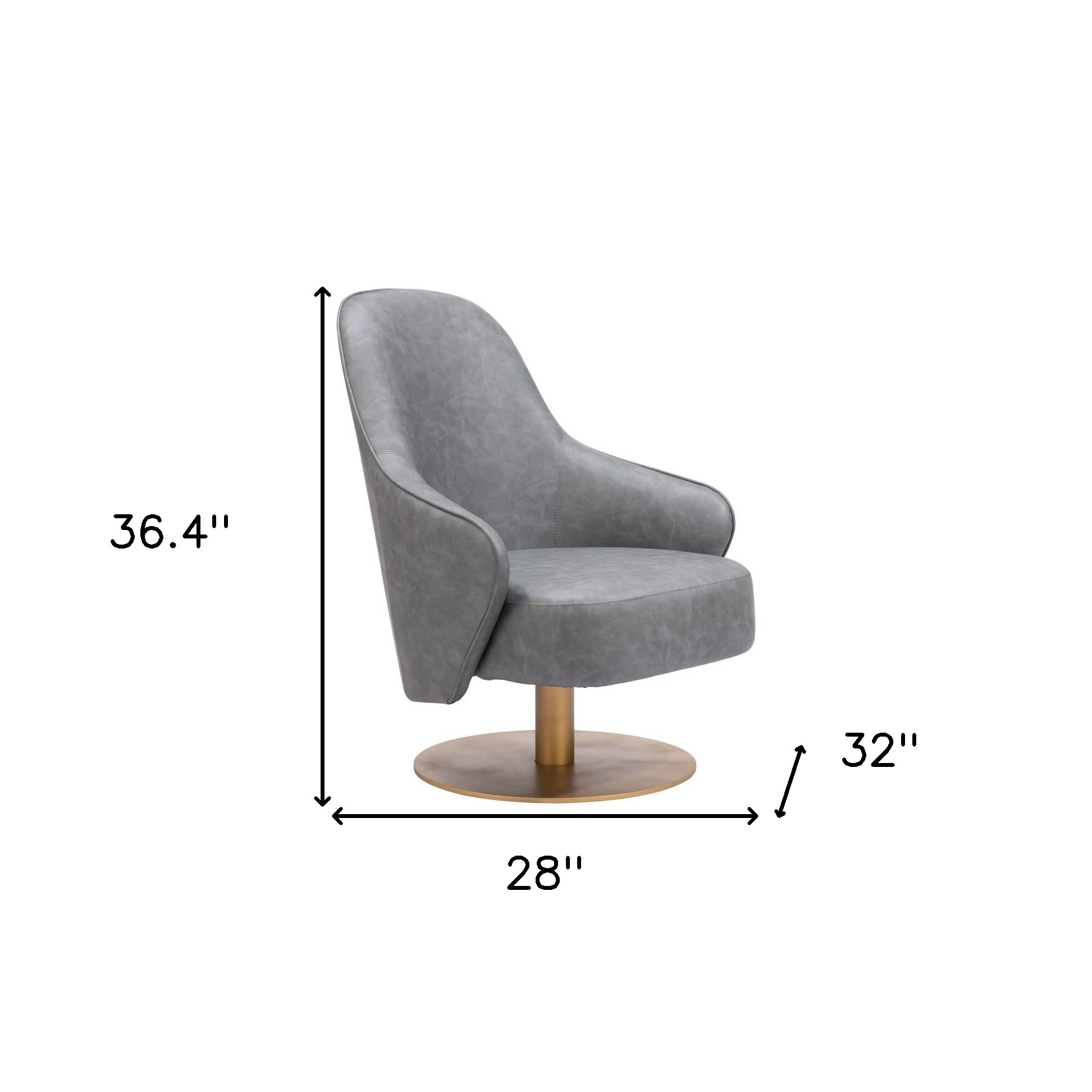 Add an air of fashion to your room and rejuvenate the space with this 28-inch gray and gold faux leather and faux leather swivel arm chair. Built to last this arm chair is finished in solid gray faux leather and polyurethane to give your room a great update. The high quality stainless steel inner frame flaunts convenient armrests and a fixed back that are complimented by soft and comfortable cushioning. A swivel feature allows this chair to turn, adding versatility to your seating. 36.4-inch h x 28-inch w x 31.5-inch d.