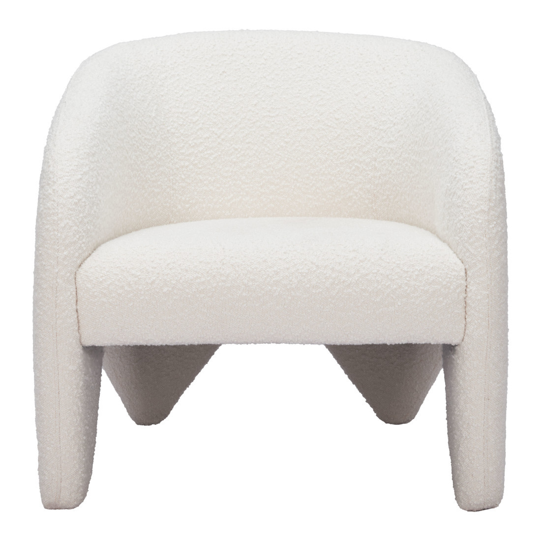 Stylish, elegant and fully functional, the 30-inch white faux shearling and upholstered arm chair adds a touch of panache to any set up. This gorgeous solid color white arm chair is masterfully upholstered in durable faux shearling and 100% polyester. The sturdy inner frame is built with high quality manufactured wood, includes armrests, and features a fixed back that is accented with soft and comfortable cushioning. 28.7-inch h x 29.9-inch w x 30.7-inch d.
